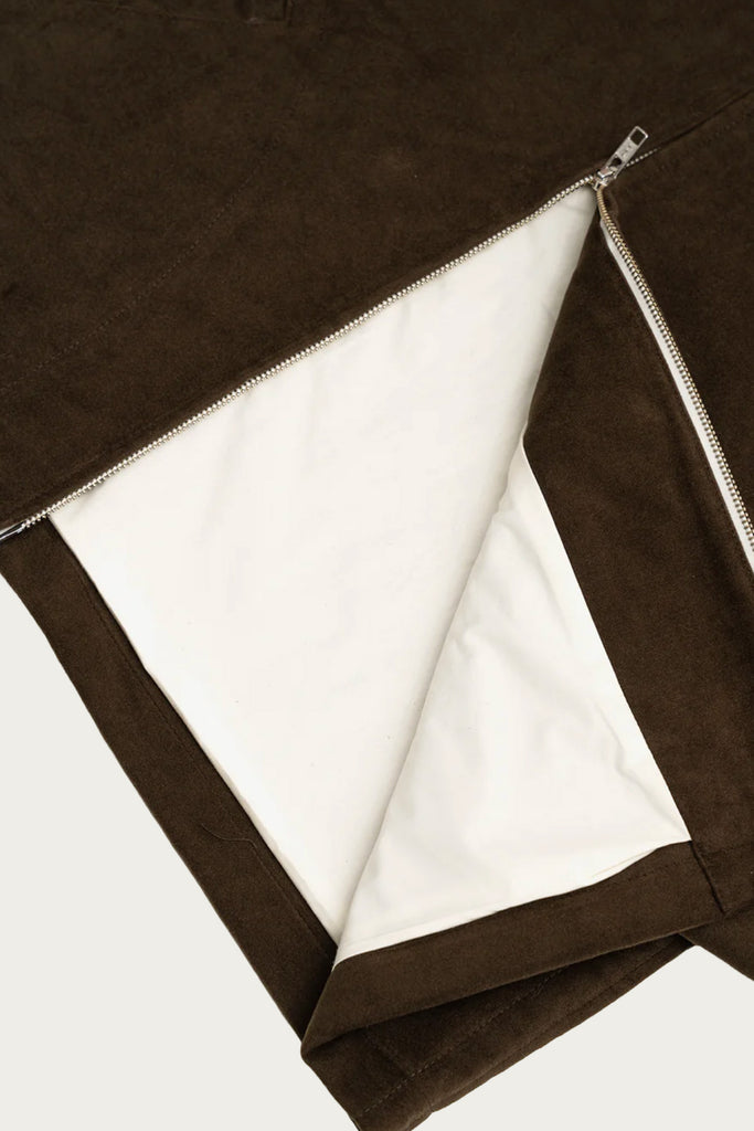 The Site Jacket brings workwear influence into James Coward’s sculptural world. Built from a dense cotton moleskin, it feels substantial but refined. The fabric has a velvety hand and breaks in beautifully, letting the architecture of the jacket settle naturally over time. Quiet, functional, and deeply wearable.