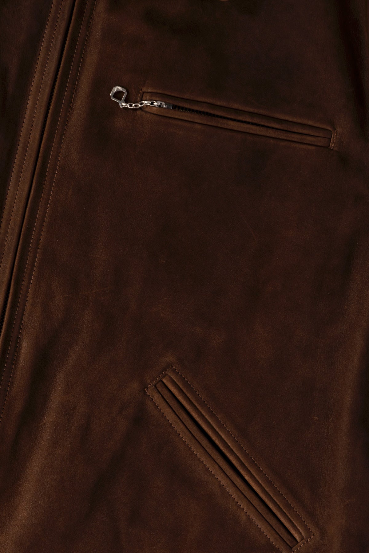 The Cow Nubuck Jacket takes a rugged classic and softens it with luxurious material. Made from fine-grain cow nubuck leather, it has a velvety hand that sets it apart from heavier, shinier leather pieces. The jacket’s simple design keeps the focus on the rich brown suede surface, letting the natural depth of the hide do the talking. Built to be lived in and to develop character over time, it works just as well thrown over denim as it does paired with tailored trousers, carrying a balance of utility and refinement.