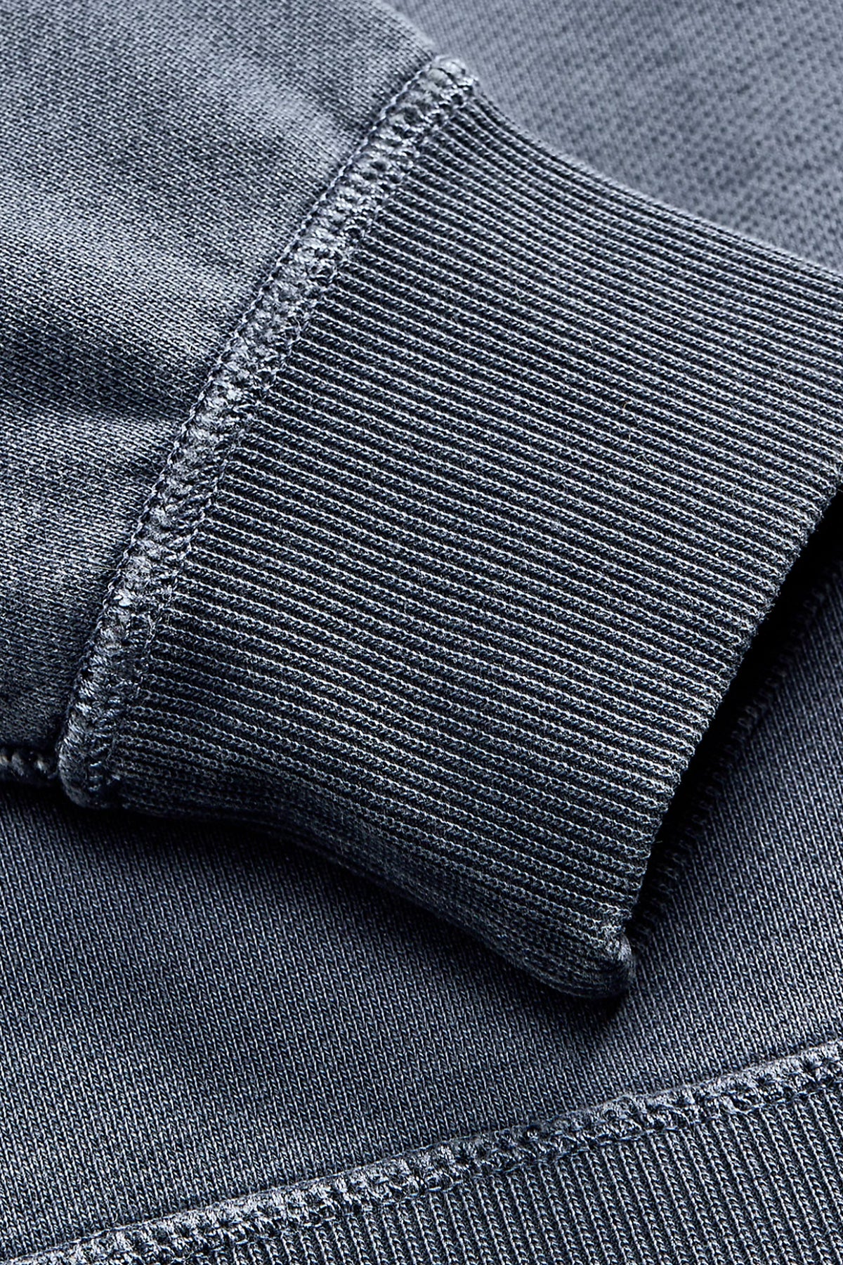 - Ribbed collar, cuffs, and hem