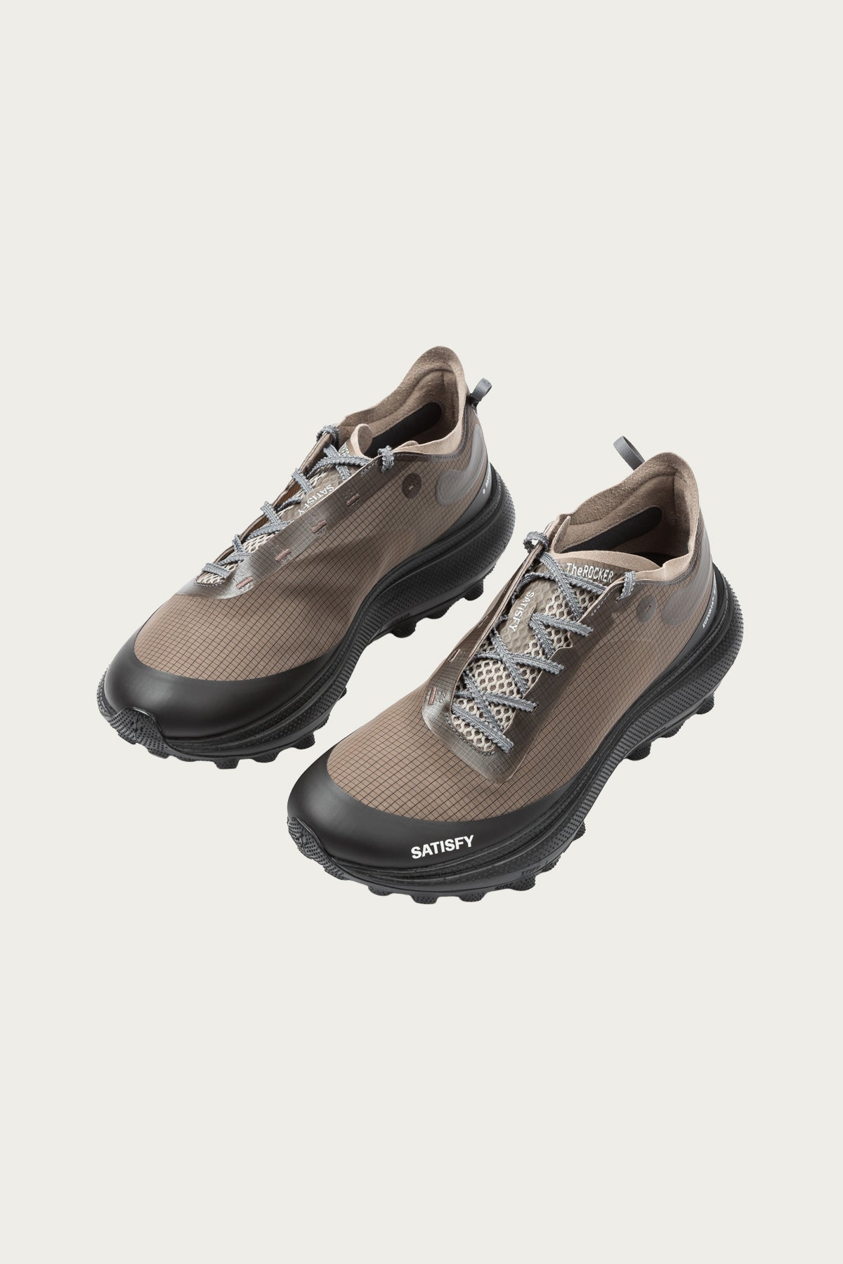Meet TheROCKER from SATISFY: a trail‐running sneaker engineered to bridge the divide between road and wild terrain with bold design and technical rigor. Its upper comes wrapped in a high-tenacity Rippy 66 monomesh made from Nova® Nylon 66, giving it breathability, structure, and abrasion resistance in equal parts. Underfoot, the midsole is built with Euforia™ foam (a proprietary PEBA/EVA blend) tuned to deliver responsive cushioning over long miles. The outsole is a standout: TuneLug™, co-developed with Vibram®, features conical lugs inspired by RC car tires and uses Megagrip + Litebase compounds for grip without excess weight. Practical touches include asymmetrical lacing to reduce pressure over the Achilles and dually scaled last (D heel / E forefoot) to accommodate natural foot expansion. TheROCKER runs true to size with a snug fit. Those with wider feet might consider sizing up half a size (though that can reduce stability on descents).