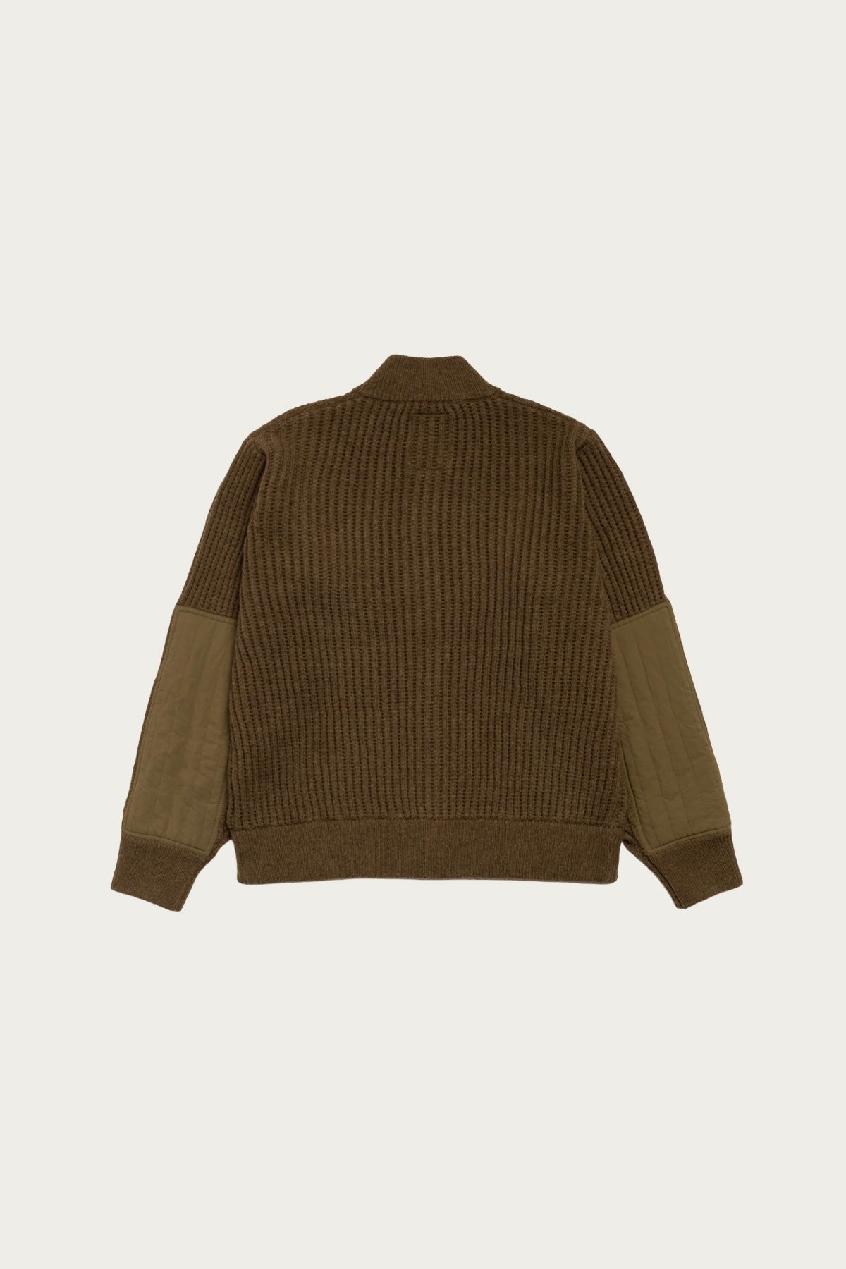 The Military Patch Zip Sweater from Stussy feels like something between a surplus knit and a cozy everyday layer. It is knit from a chunky 7 gauge lambswool blend that is soft without being fragile, with a relaxed fit and mock neck that sits comfortably over a tee or under a jacket. The two way zip makes it easy to style open or closed, and the quilted elbow patches bring in that subtle military nod without feeling like costume. Finished with ribbed cuffs and hem and a printed Tyvek patch label at the back, it is the kind of sweater you can throw on all season and let it do the work for you.