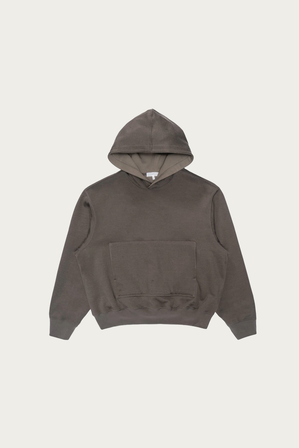 The 2 Ply CR Hoodie is a boxy, wide-fitting hoodie with a high crossover collar. Cut from a dual-layered jersey-fleece with a cotton-rayon face with a matte sheen and smooth jersey interior, the boxy fit takes on a structured volume that sits above the waist.