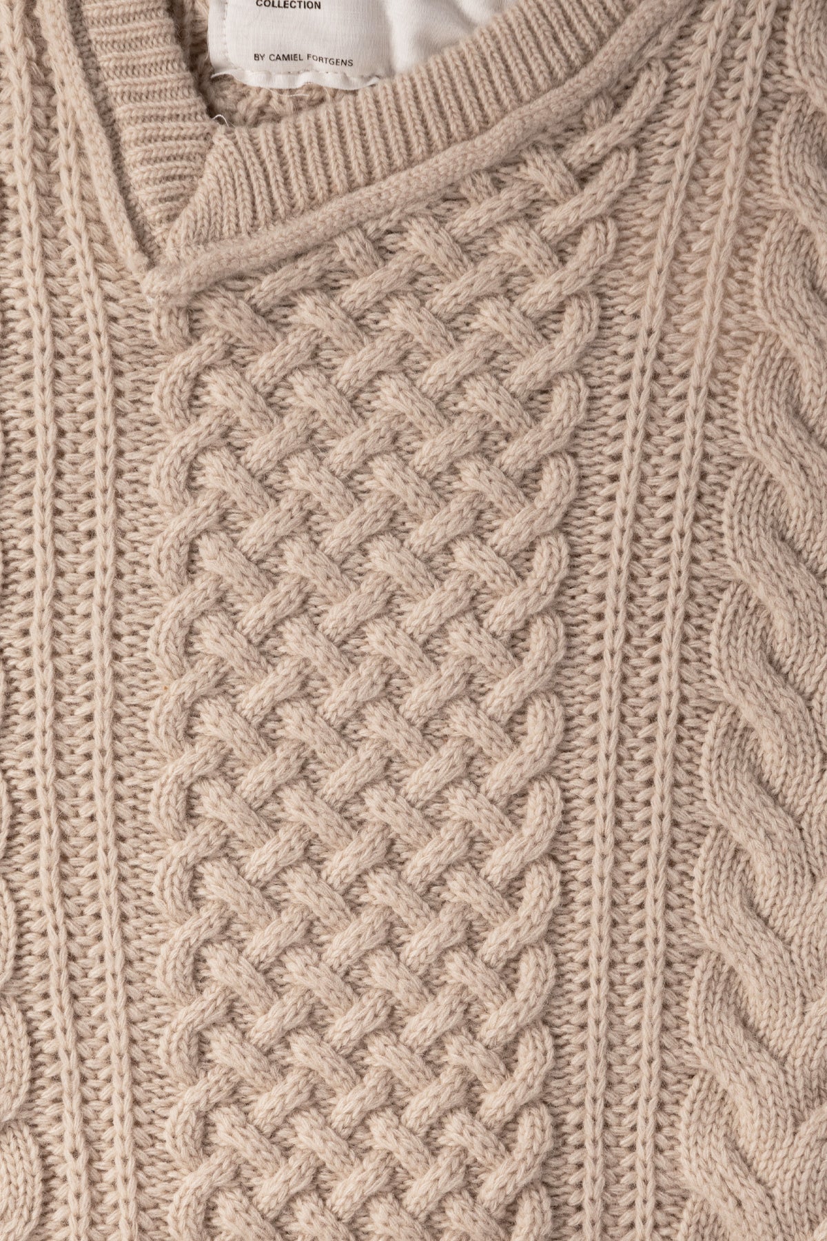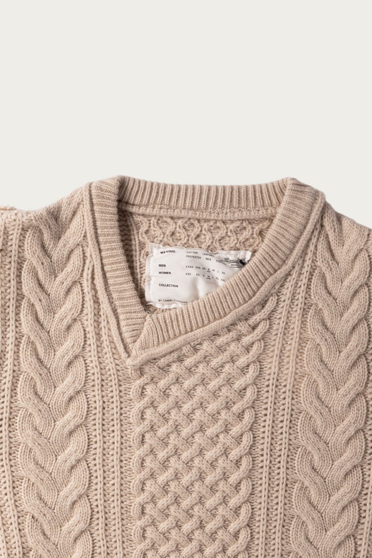A knit that feels like a slow unraveling: organic, textural, and quietly wild. Made from a plush lambswool blend in soft off-white tones, the fabric is comfortable enough for a lazy day inside and structured enough for an afternoon at the office. Despite its substantial knit, the sweater drapes gently and breathes naturally, knit with a careful tension that feels alive.