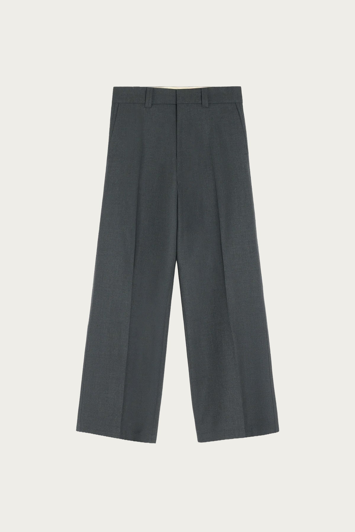 These pleated pants are in the spirit of traditional tailoring. They are made from a wool-blend suit fabric. With a characteristic twill weave, they are both dense and supple.