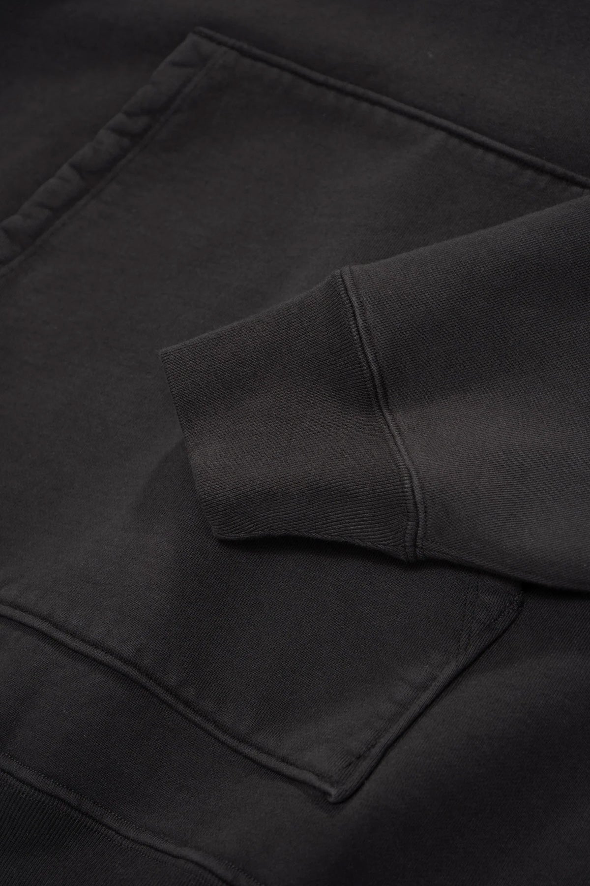 Made from a specially developed high gauge french terry fabric, the Super Weighted Hoodie from Lady White features an overlocked edge on the hood with a crossover front. Very stiff feeling and heavyweight for colder weather, but will breaks-in perfectly with wear. The perfect black hoodie that you've been looking for.