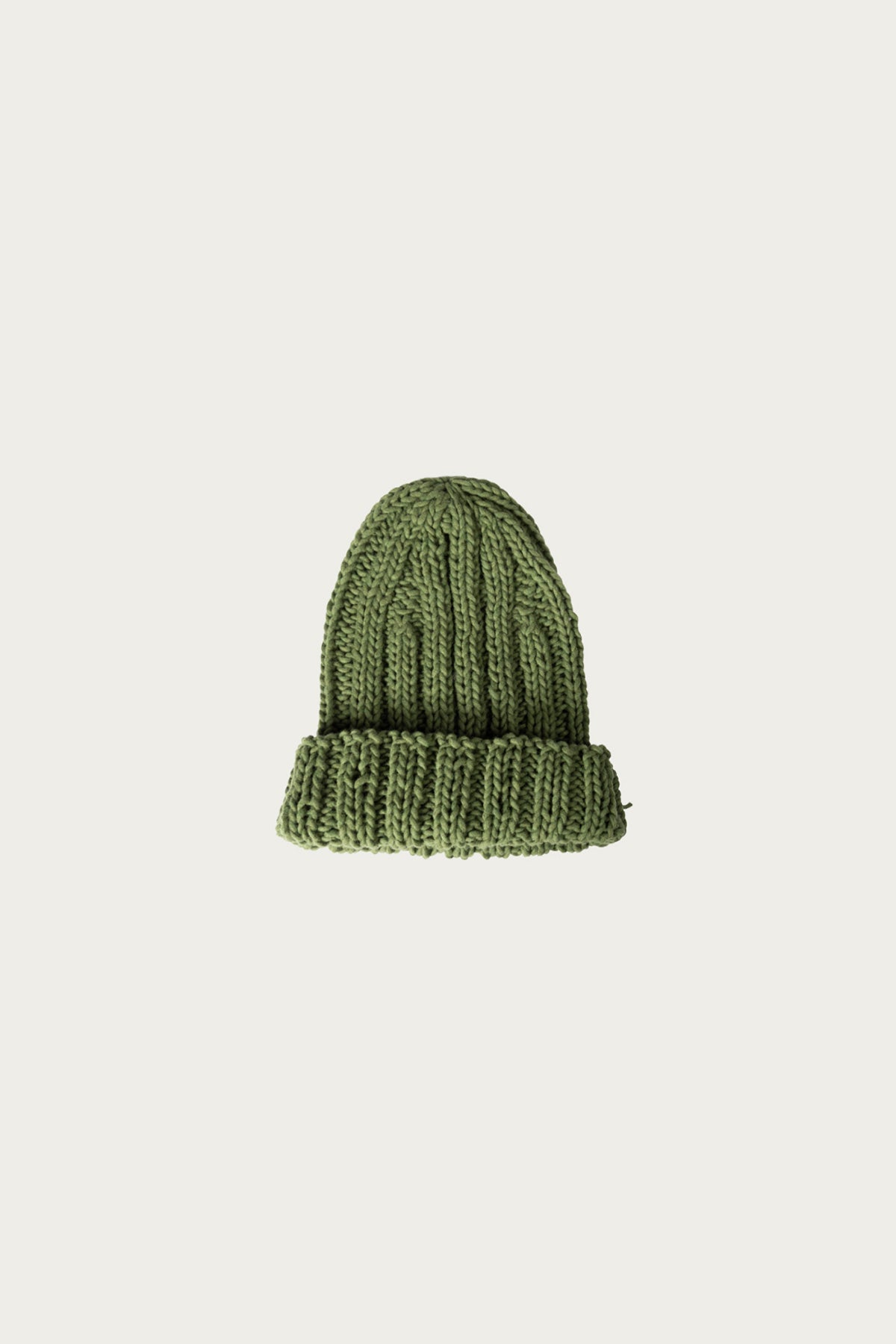Wool Cashmere Felted Hand Knit Cap - Olive