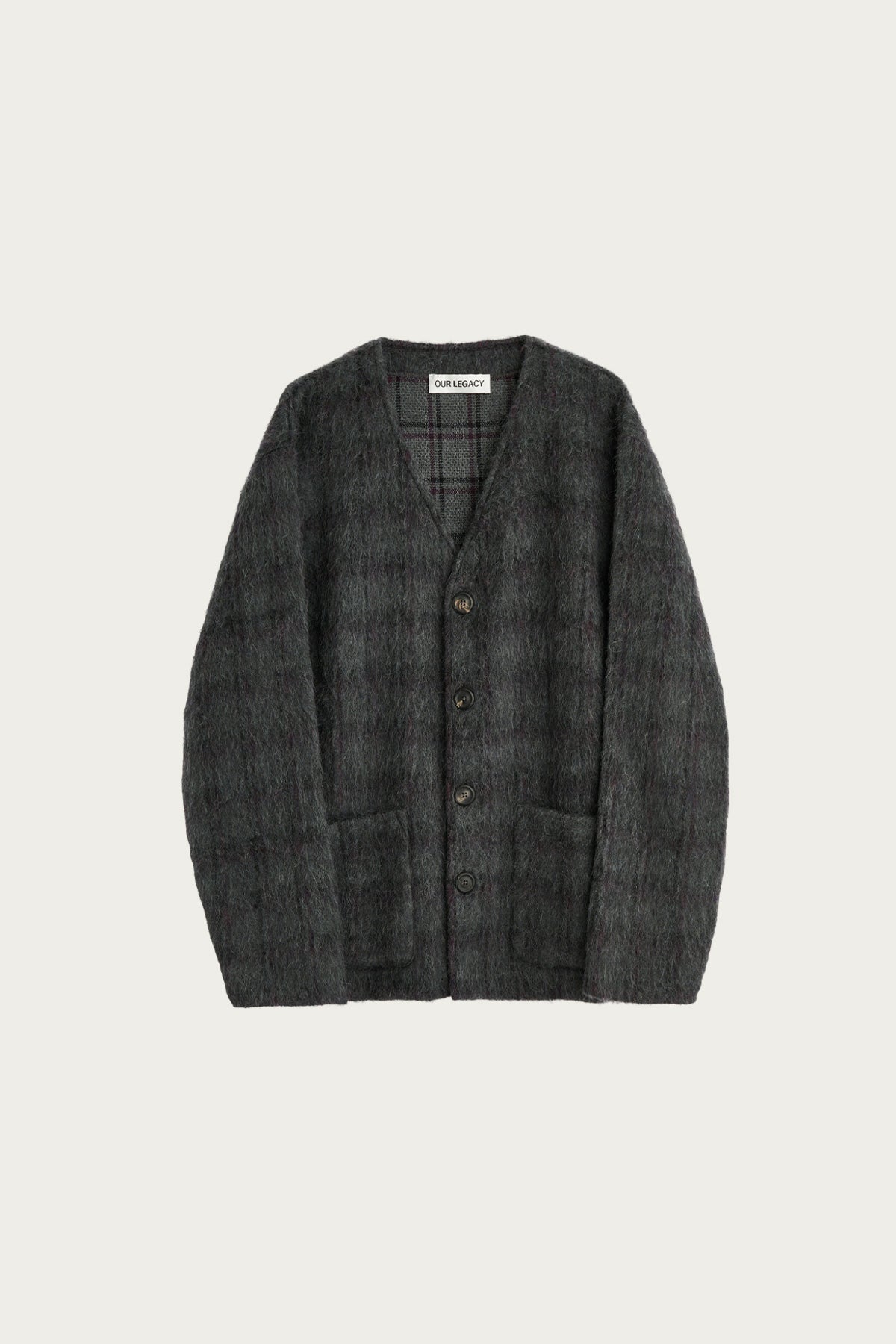 Cardigan - Fuzzed Plum Check Hairy Wool