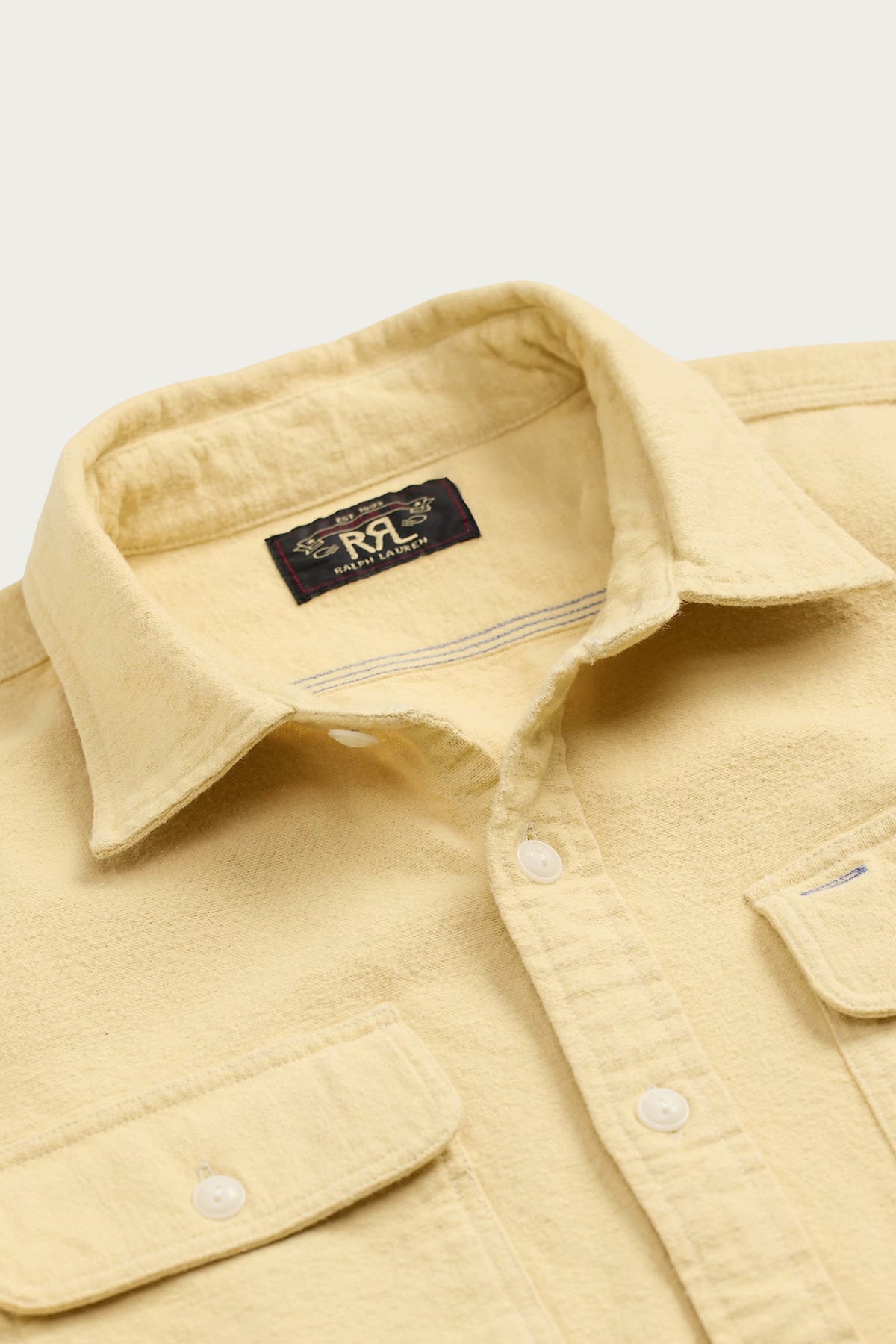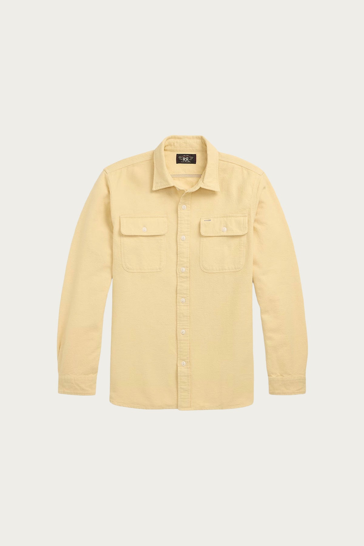 Slightly oversize fit. Made with medium-weight cotton chamois cloth. Brushed finish. Details inspired by 1950s workshirts. Washed to achieve tonal dimension along the seams and an authentic timeworn effect.