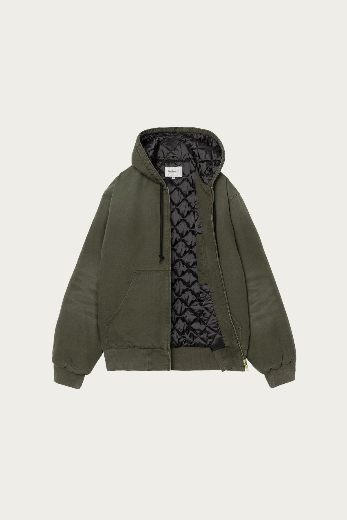 The OG Active Jacket is made of 12 oz organic cotton Dearborn Canvas. It is a heavyweight, insulating style cut in our original loose fit, and features a diamond-quilted lining, as well as a ribbed hem and cuffs. A kangaroo pocket, adjustable hood and zipped front fastening offer functional touches, while triple-stitch details provide extra durability.