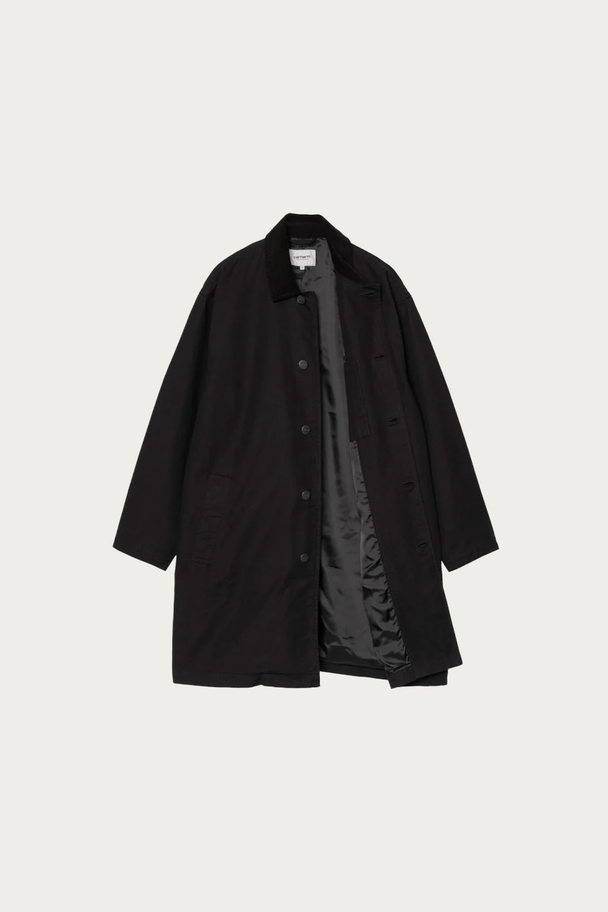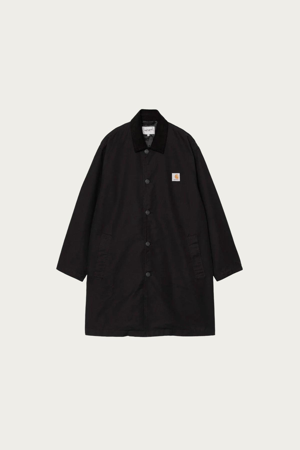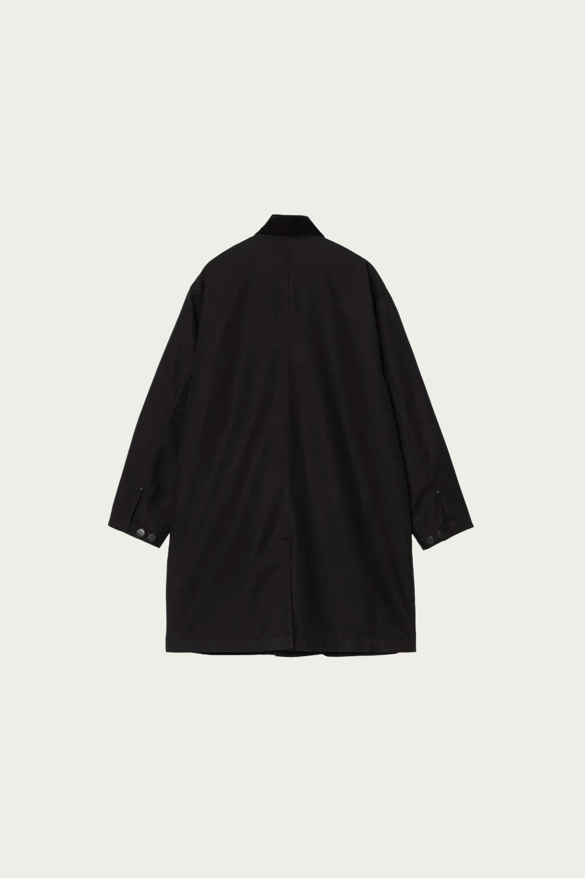 The Webster Coat is made from lined, midweight cotton canvas. The style features a corduroy collar, two welt pockets on the front, and triple-stitched details at vital stress points for added durability. A woven Square Label appears on the chest.