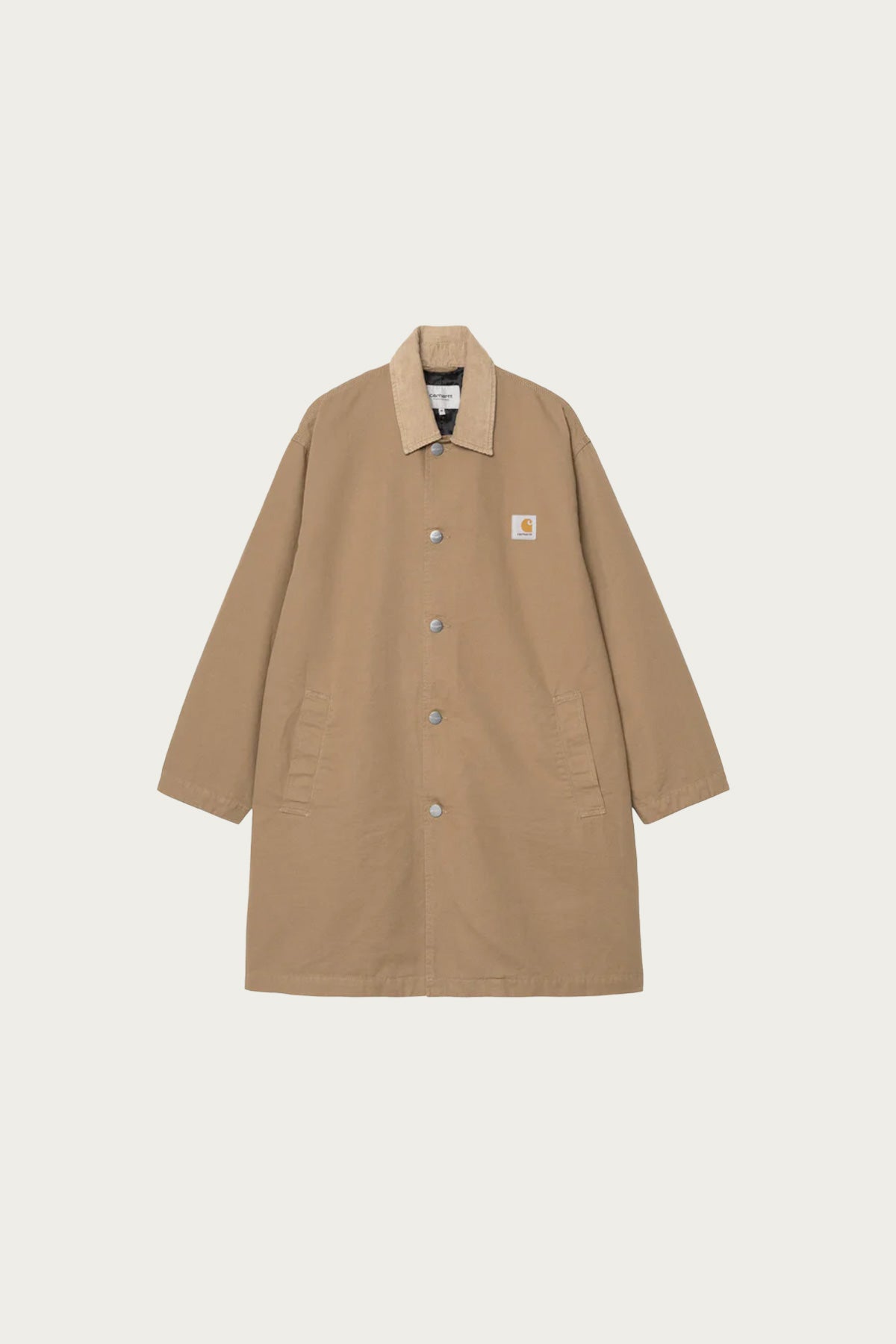 Crafted from lined, midweight cotton canvas, the Webster Coat offers durability and comfort. It includes a corduroy collar, two front welt pockets, and triple-stitched reinforcement at key stress points to enhance longevity. The chest displays a woven Square Label, underscoring its refined design.