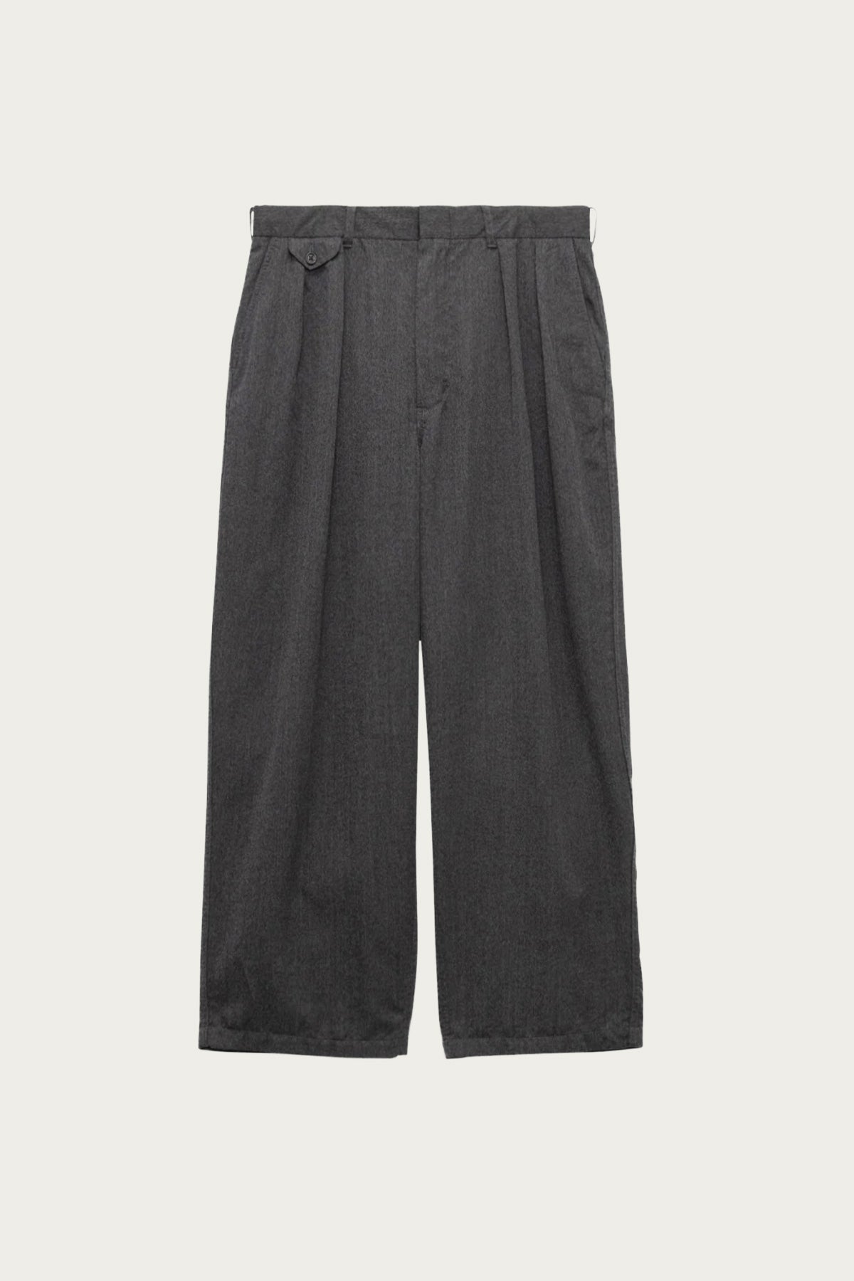Wool Gabardine Pleat Pants - Charcoal