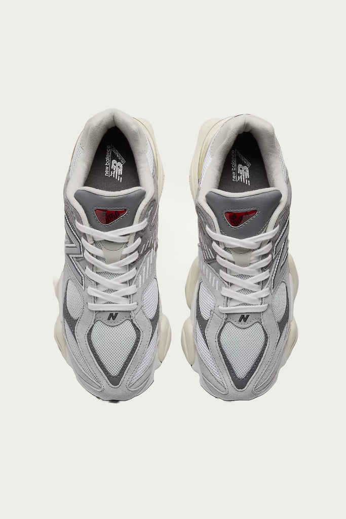 The 9060 is a new expression of the refined style and innovation-led design that have made the 99X series home to some of the most iconic models in New Balance history. The 9060 reinterprets familiar elements sourced from classic 99X models with a warped sensibility inspired by the proudly futuristic, visible tech aesthetic of the Y2K era. Sway bars, taken from the 990, are expanded and utilized throughout the entire upper for a sense of visible motion, while wavy lines and scaled up proportions on a sculpted pod midsole place an exaggerated emphasis on the familiar cushioning platforms of ABZORB and SBS.