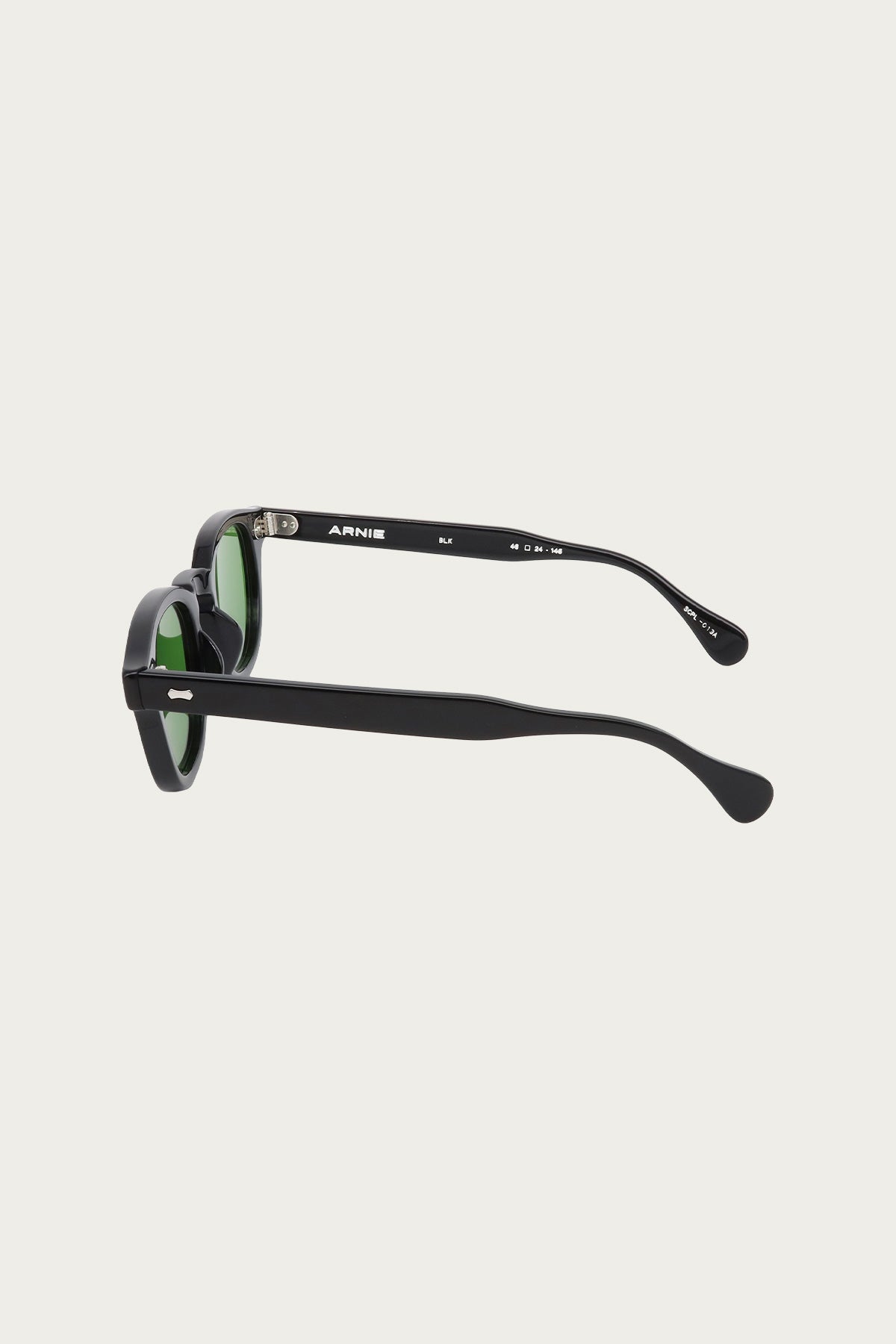 "Don't let his charm fool you." The ARNIE is a classic keyhole wellington hybrid shape with signature bowtie beauty marks. Handmade in Japan using Takiron Cellulose acetate and Titanium plated components and Shima Optics Sun lenses.