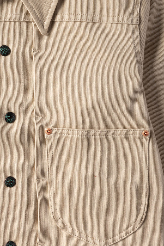 Cut from a different cloth-- literally and figuratively. The Bedford Cord Ranch Jacket in Off White is Wythe’s tribute to the kinds of denim jackets you only find in old Western catalogs or the back corner of a vintage shop, but rebuilt with care for how we wear things now. The bedford cord fabric is woven in Japan on selvedge looms. Soft, strong, and full of ridged texture that gets better with time.