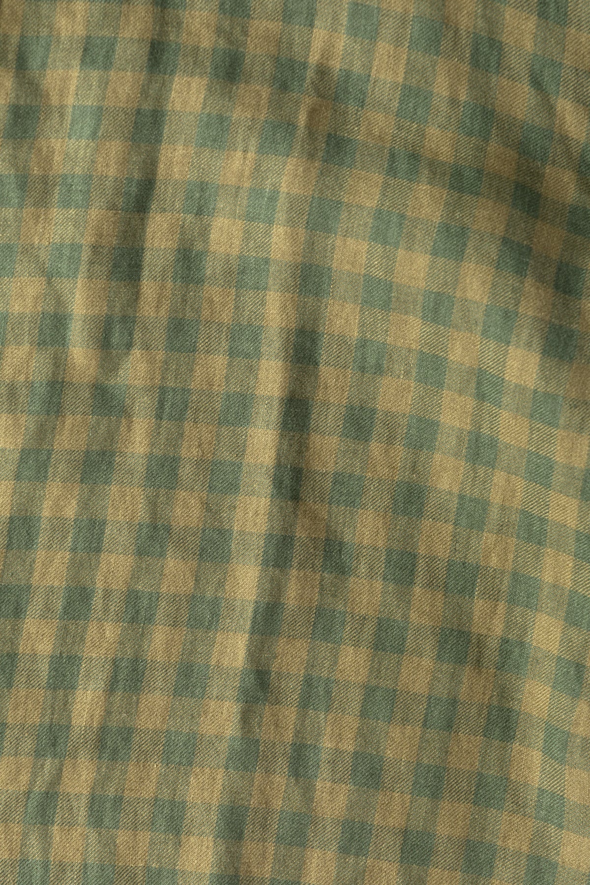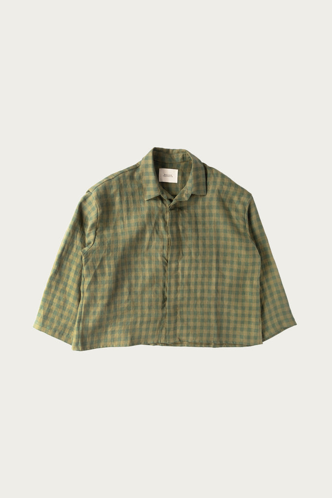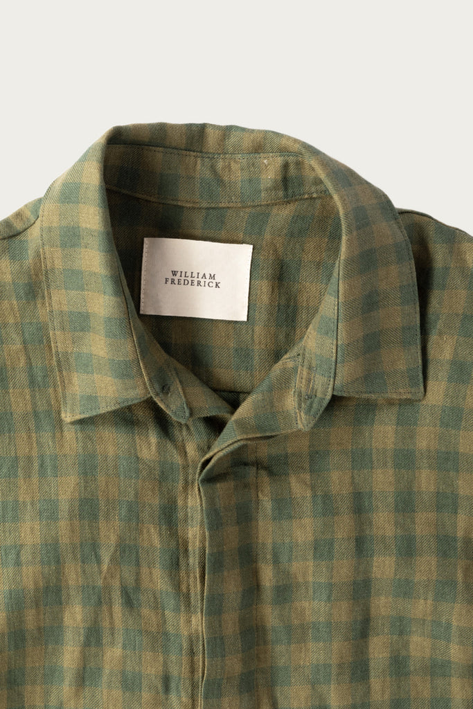 Woven from Irish linen with a soft slub and breezy hand, the Café Shirt in Grass Plaid channels timeless utility through an easy, tailored lens. The tonal green check feels nostalgic without leaning too vintage, while refined details like a hidden placket and natural corozo buttons keep things crisp. A squared hem, dropped shoulders, and chest patch pocket add ease and function to this lightweight staple.