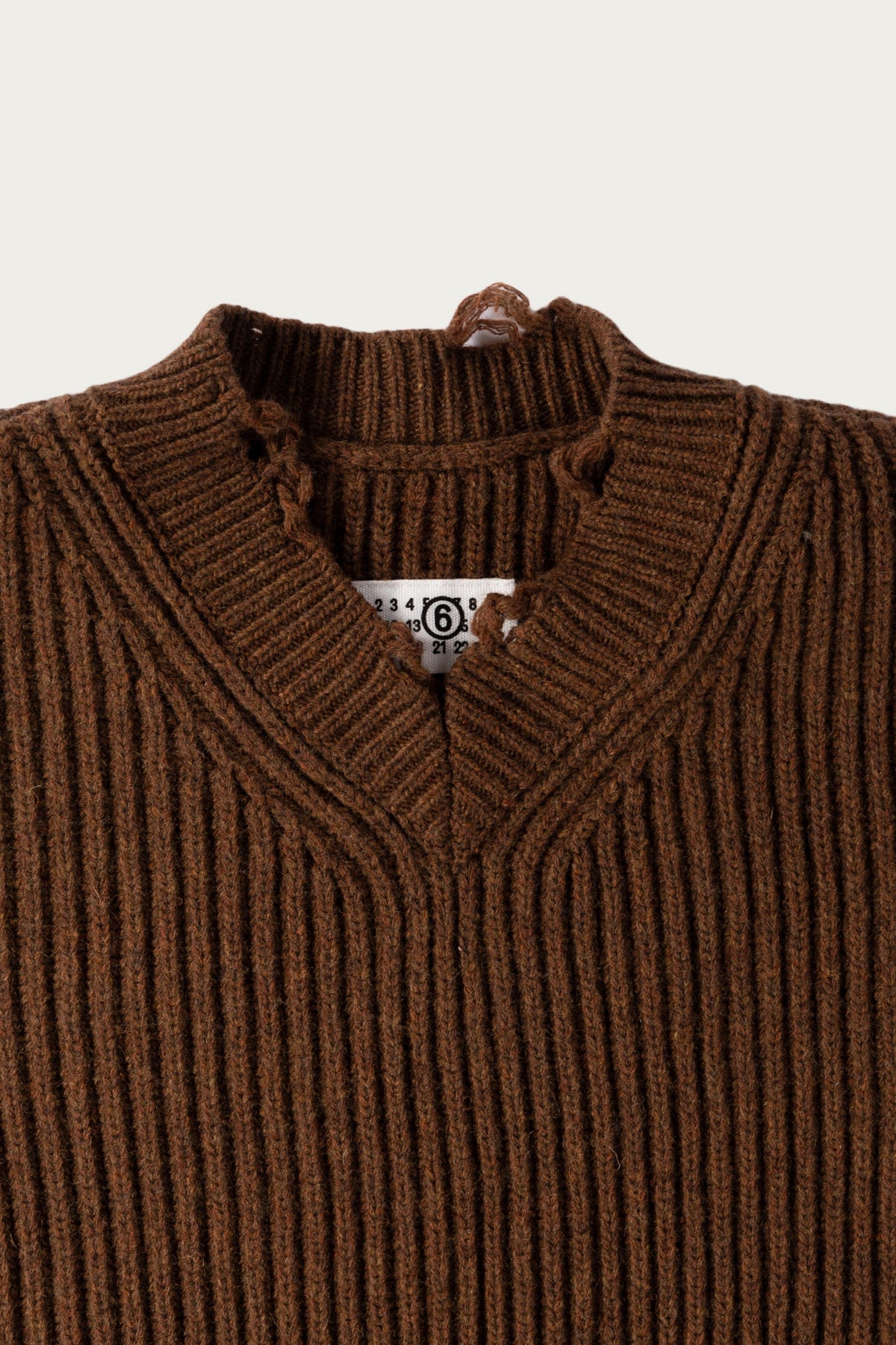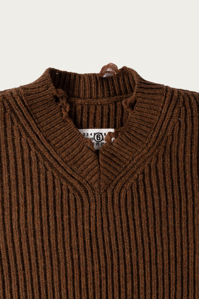 This sweater doesn’t try too hard, but still stands out. The v-neck hits low with frayed detailing, and the thick-knit fabric hangs loose on the body. Available in a warm grey or a deep earthy brown, both carry just the right amount of dishevelment.