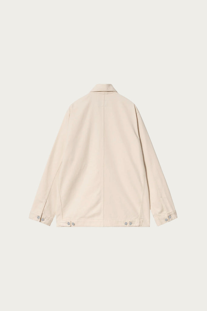 Timeless and versatile. The Drewe Chore Coat in Natural Rinsed offers a clean, minimalist aesthetic. Made from the same durable 8 oz cotton 'Fountain' twill, this unlined jacket maintains the classic chore coat features with a refined touch. The natural rinsed finish provides a soft hand feel and a lived-in look from the first wear.