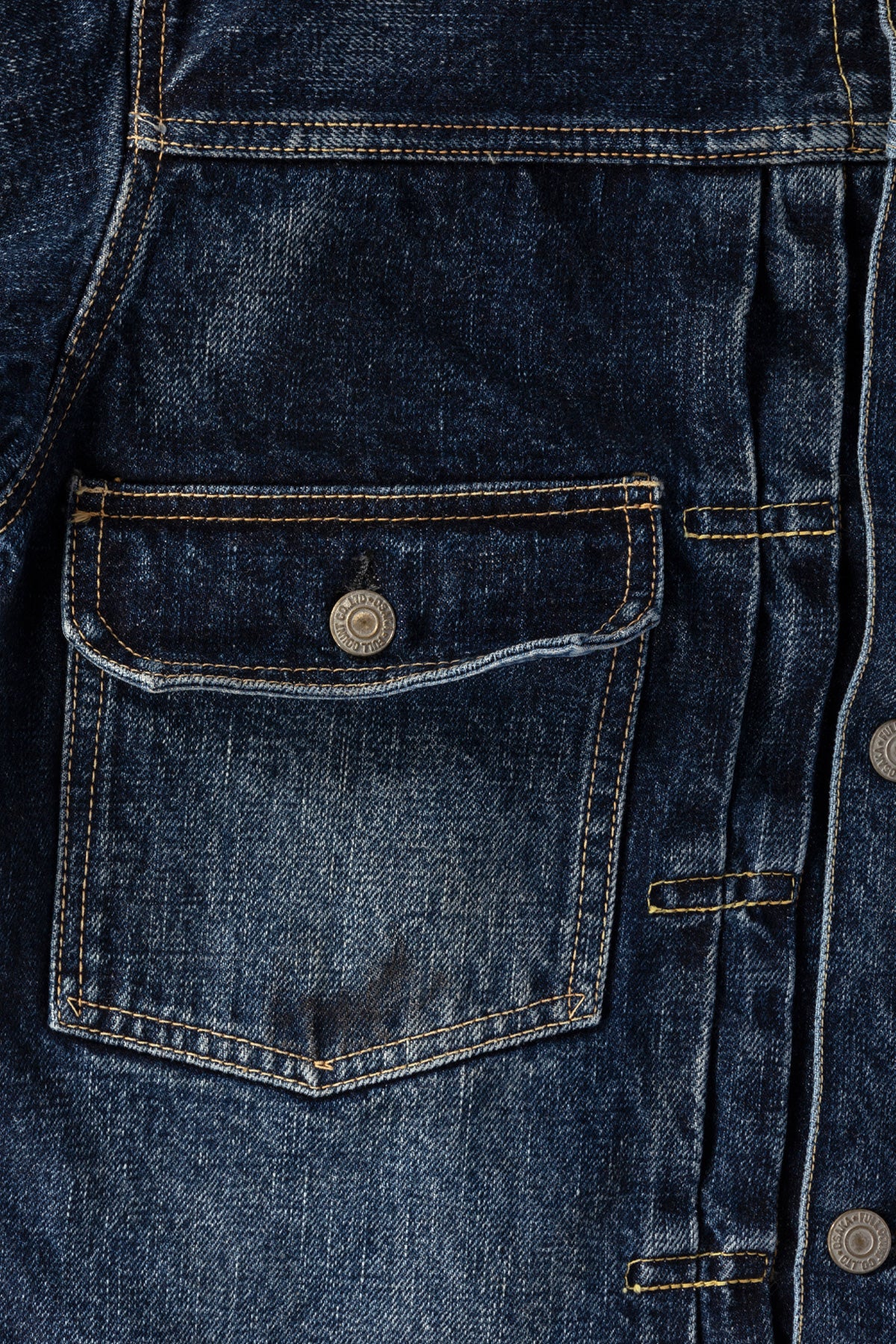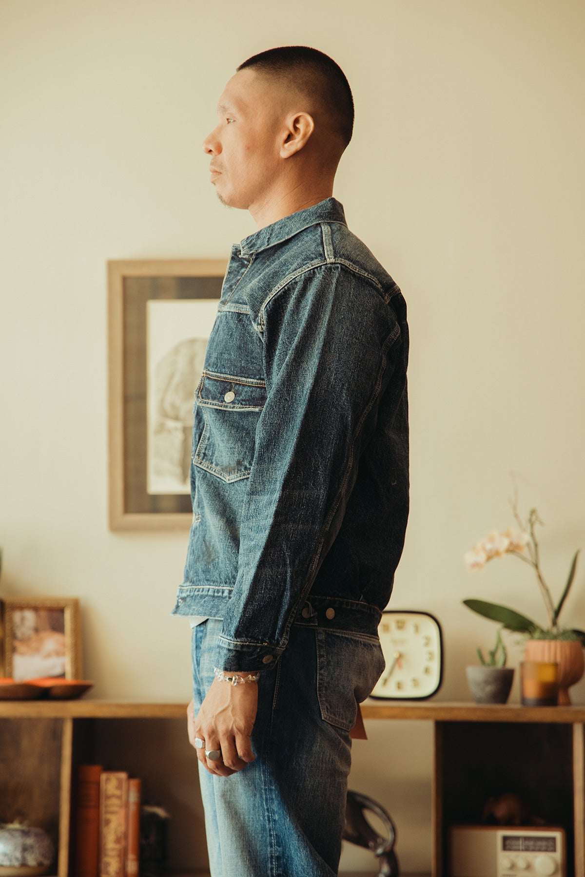 A mid‑century denim icon, remade. This Type II jacket is cut from 15.5 oz unsanforized selvedge denim woven from pure Zimbabwean cotton and crafted in Okayama, Japan. It lands heavier and richer than standard denim, with inky indigo depth and contrast fade points unique to this “Fear of the Dark” wash .