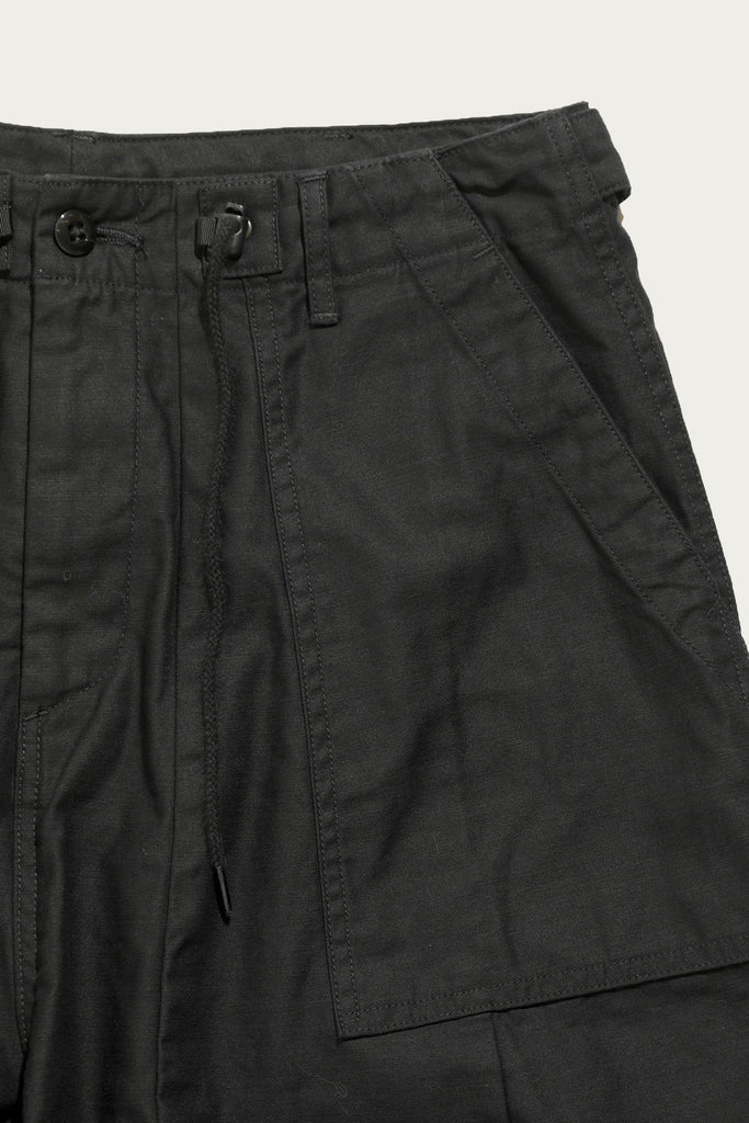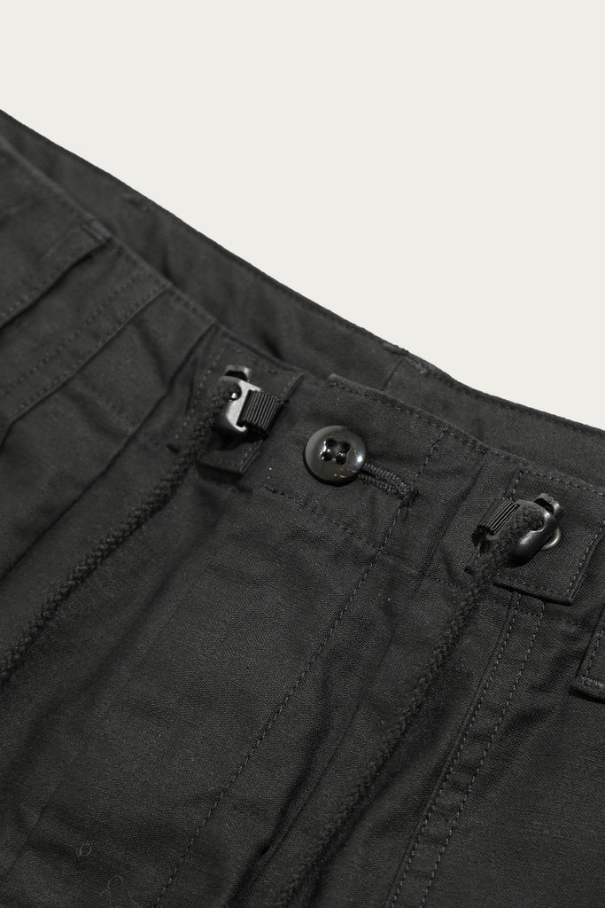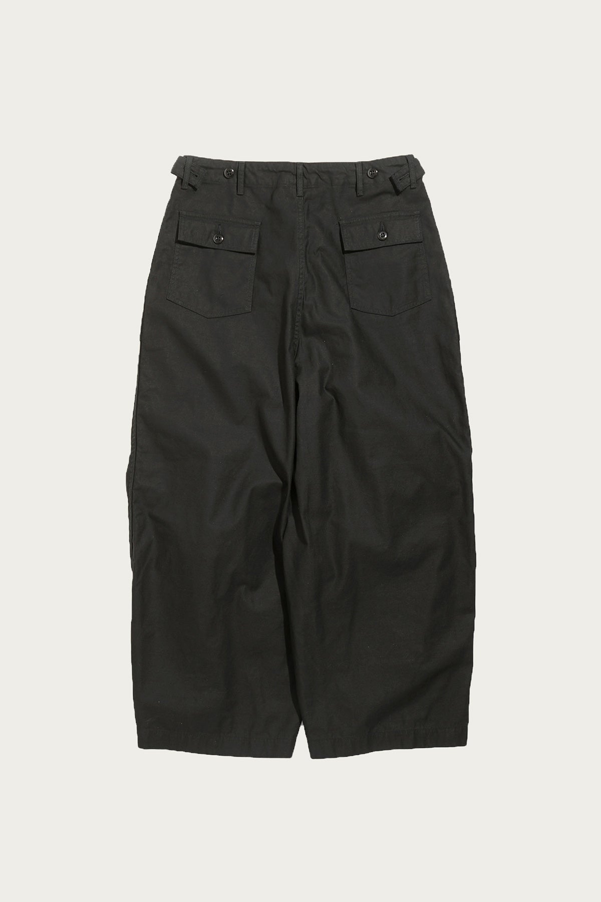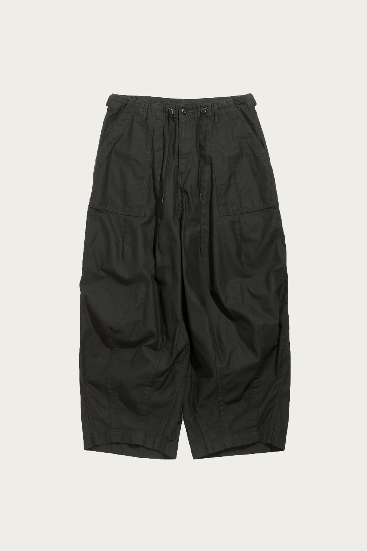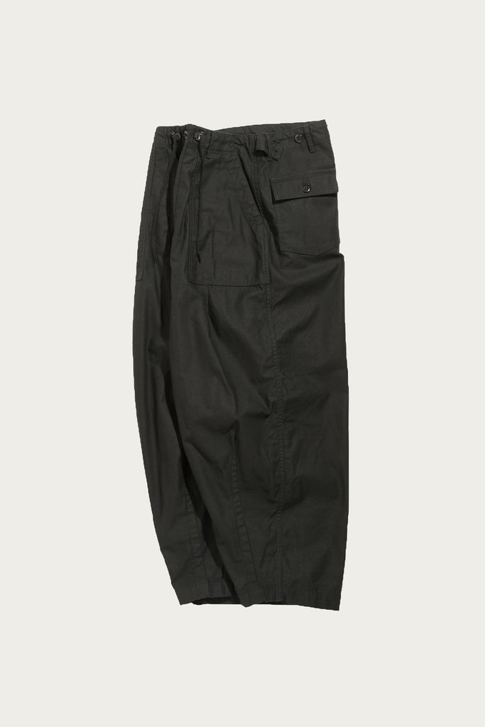 Crafted in a rich black cotton that only gets better with wear, these pants billow with intentionality. A high rise meets an ultra-wide leg that tapers dramatically at the drawstring hem, letting you style them loose over sneakers or cinched up for that lantern-like shape. The deep pleats and oversized cut reference vintage military and workwear, but filtered through Needles' distinctly Japanese lens.