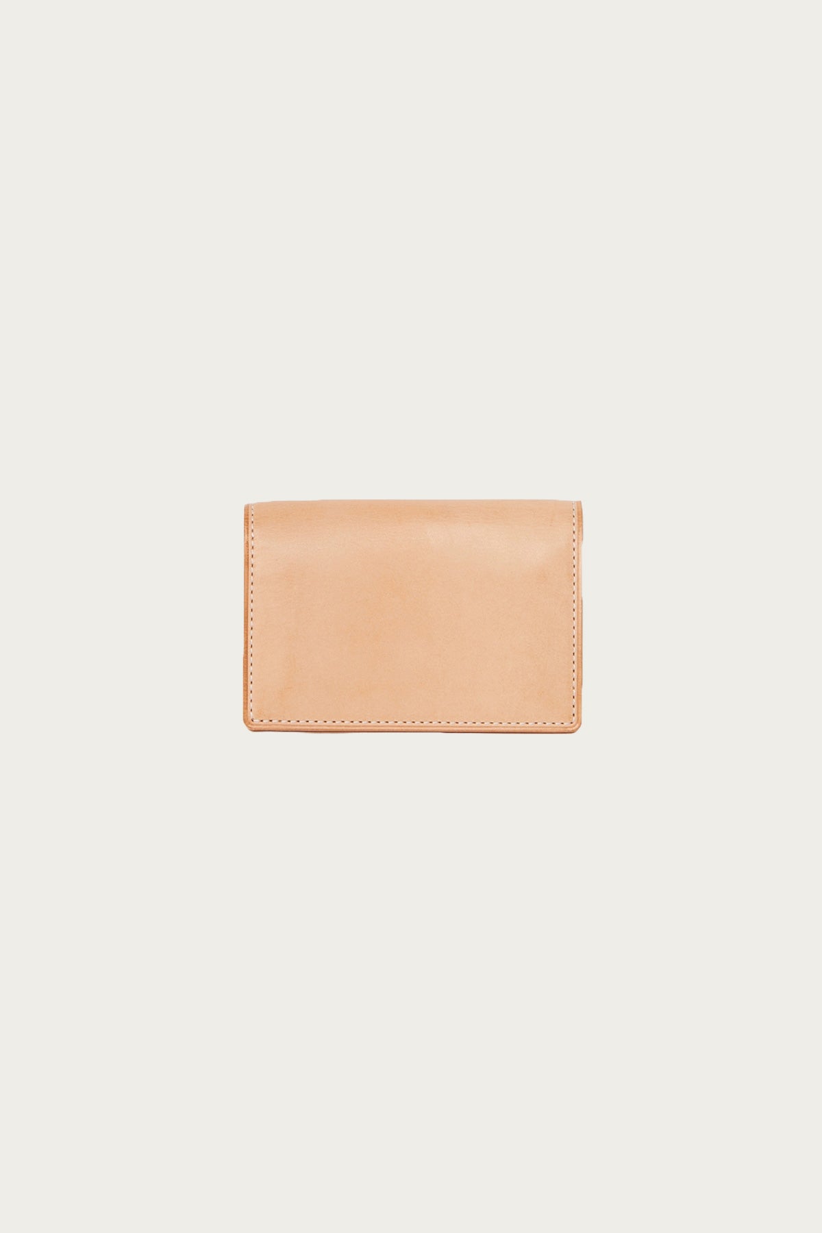 Classic card case with a single fold in a natural vegetable tanned leather that will develop rich hues with use.