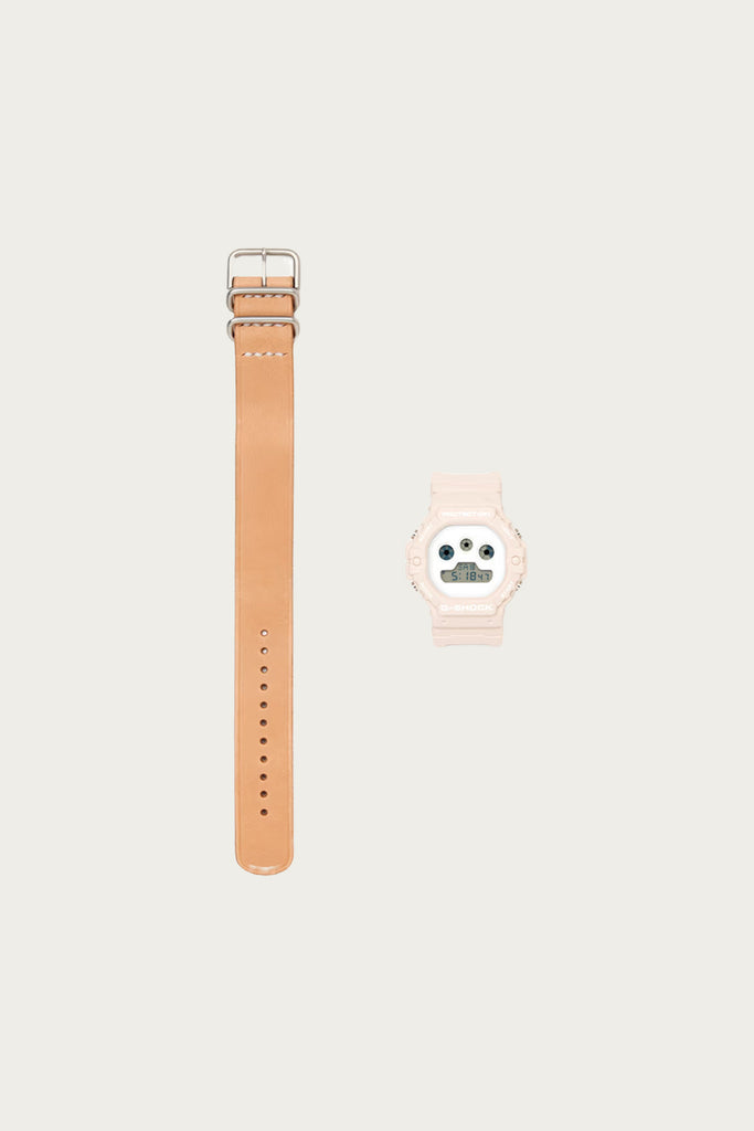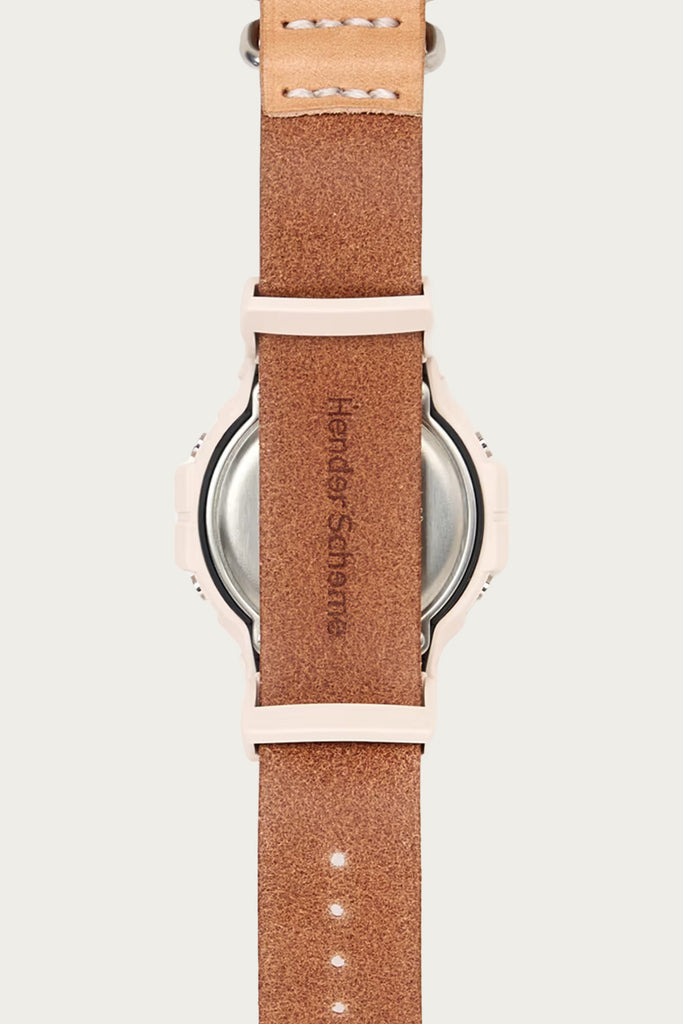 A collision of analog craftsmanship and digital legacy, the Hender Scheme x G-SHOCK DW-5900 reimagines Casio’s cult-classic silhouette through the lens of Tokyo-based leather artisanship. Wrapped in Hender Scheme’s signature undyed, vegetable-tanned leather, the rugged polycarbonate case and resin core remain untouched beneath, bringing a human warmth to G-SHOCK’s hard-edged durability.