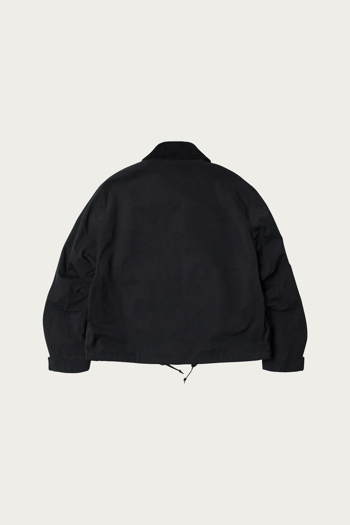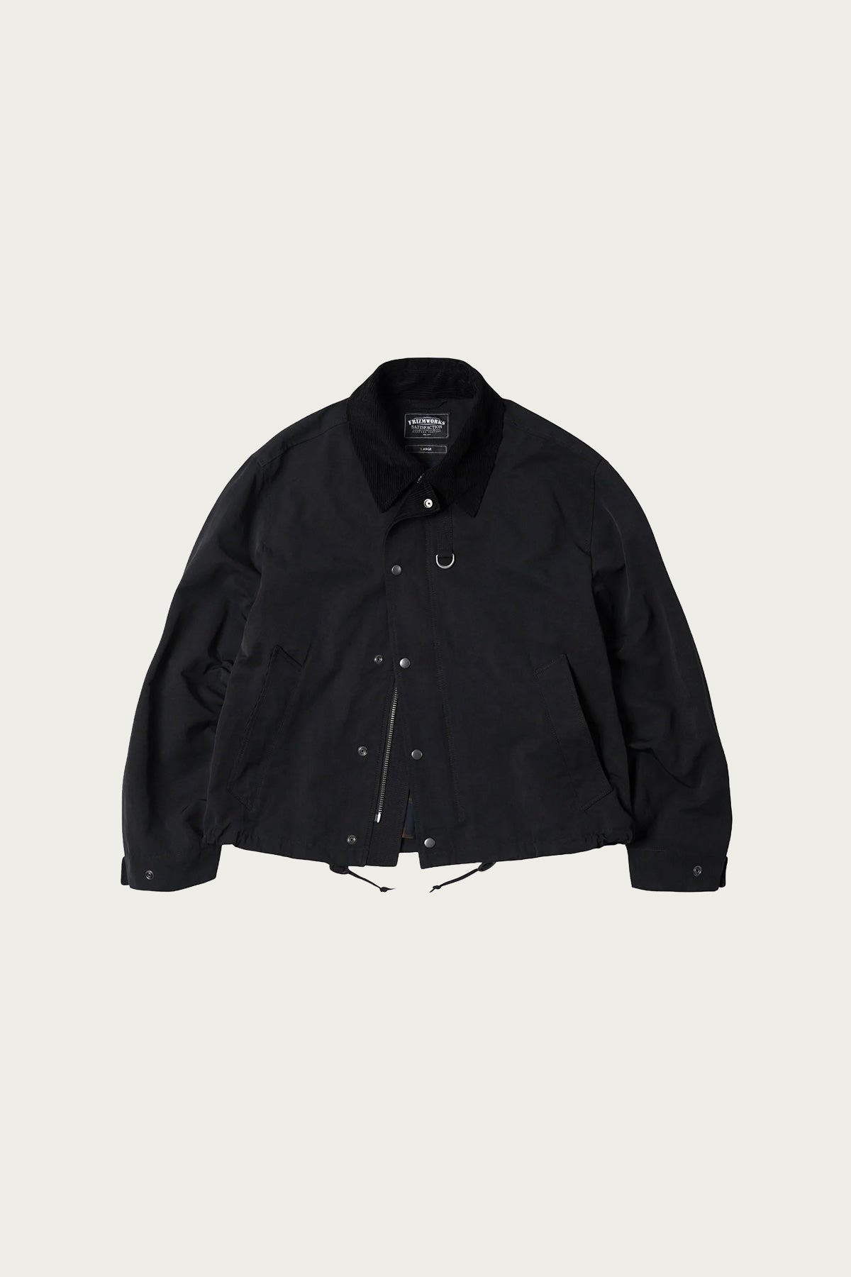 This hunting jacket features a classic fabric arrangement and modern silhouette. It is crafted with raw and auxiliary materials and tailored with careful attention to details and silhouette. It has a strong, wide body and truncated length, along with a smart, accessible pocket on the front. Durable CPN pitch processing fabric adorns the exterior, while the collar and inner hem are crafted with corduroy fabric and lined with lightweight flannel check fabric. This provides the essential heft and tactile qualities for a rugged yet refined product that elevates any outfit.