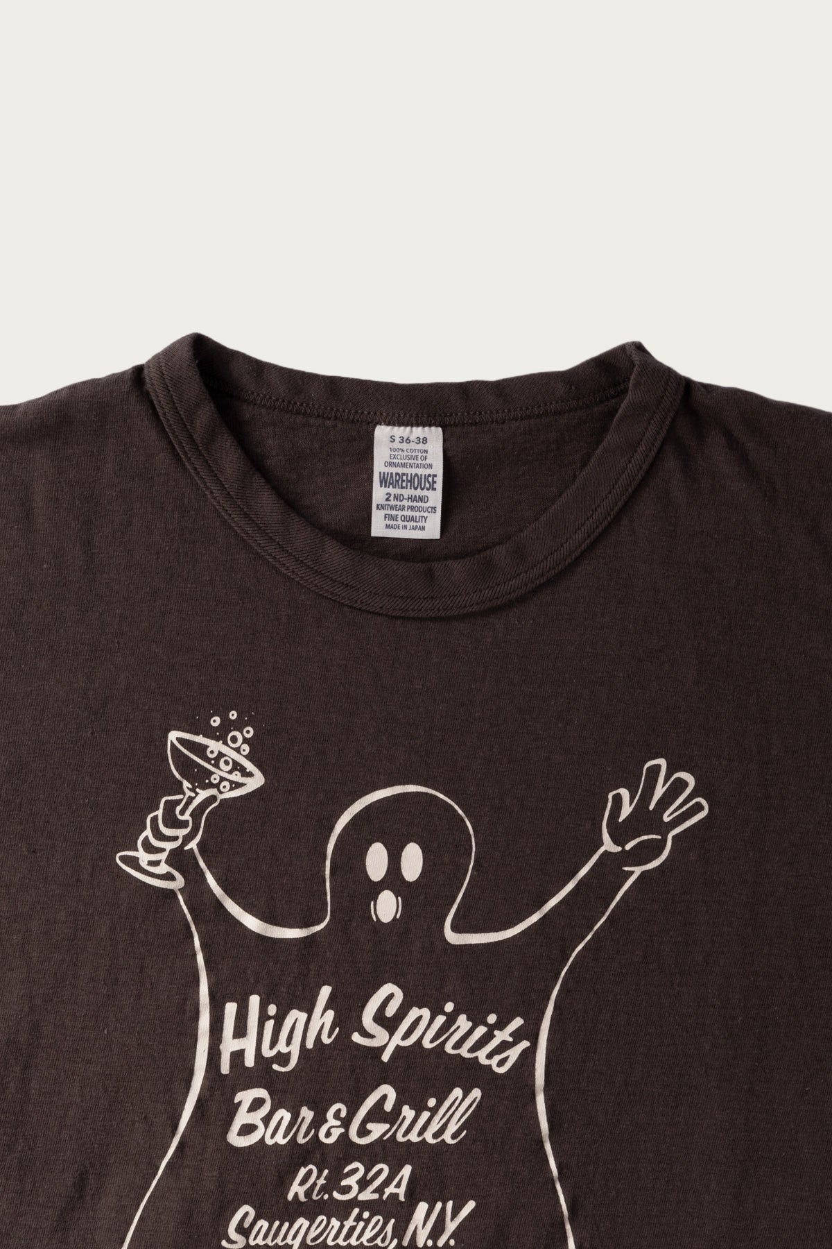 A throwback to the golden era of athleticwear, the Warehouse Lot.4064 "High Spirits" Tee is part of the brand’s 2nd Hand Series-- a collection designed to look and feel like it’s already been through years of good living. Made from Warehouse's original cotton slub knit jersey, this piece mimics the dry touch and faded texture of a well-worn favorite pulled from a ‘50s locker room or vintage shop score.