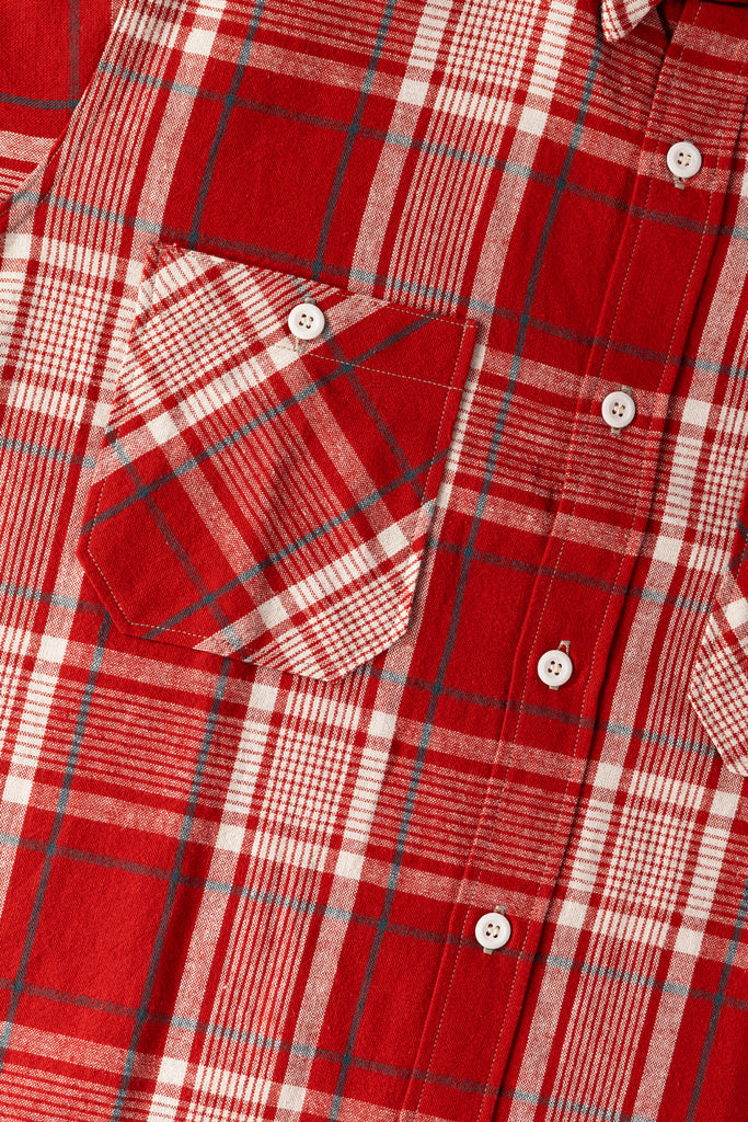 A classic workwear staple done the Warehouse way-- meticulously researched, faithfully reproduced, and built to last. The Longsleeve Check Workshirt in Red plaid has just the right amount of fade, giving it that sun-washed look of a well-loved layer from the '50s. Cut from midweight cotton flannel, this shirt walks the line between rugged and refined.