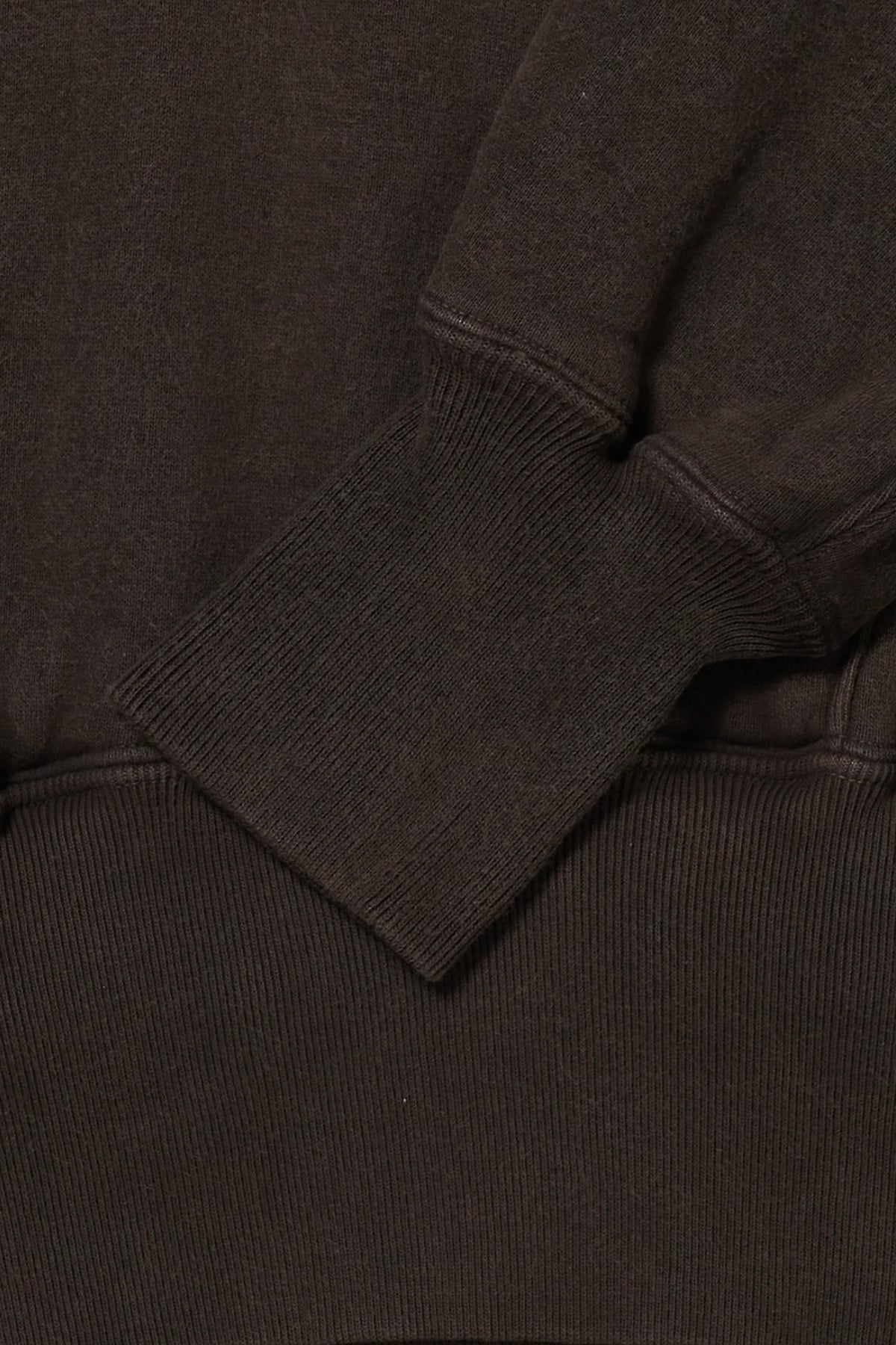 The garment is finished in Mud Dyed Brown, using the traditional mud-dyeing technique of Amami Oshima Island. Each hoodie is dyed one by one, resulting in a completely unique shade and depth of color. No two are ever exactly alike.