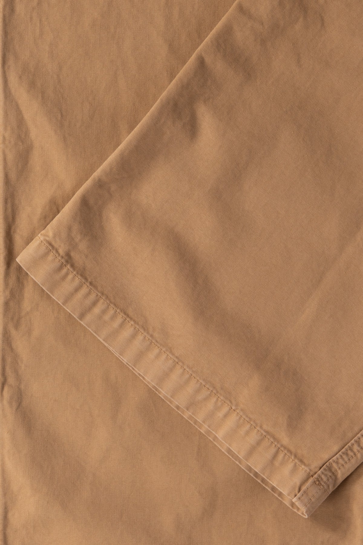A utility classic reimagined with the MM6 lens. Cropped and boxy with exaggerated pockets and tonal stitch detailing. Cut in a rich tan cotton twill, they offer a clean base that still brings visual interest. Equal parts sculptural and grounded.