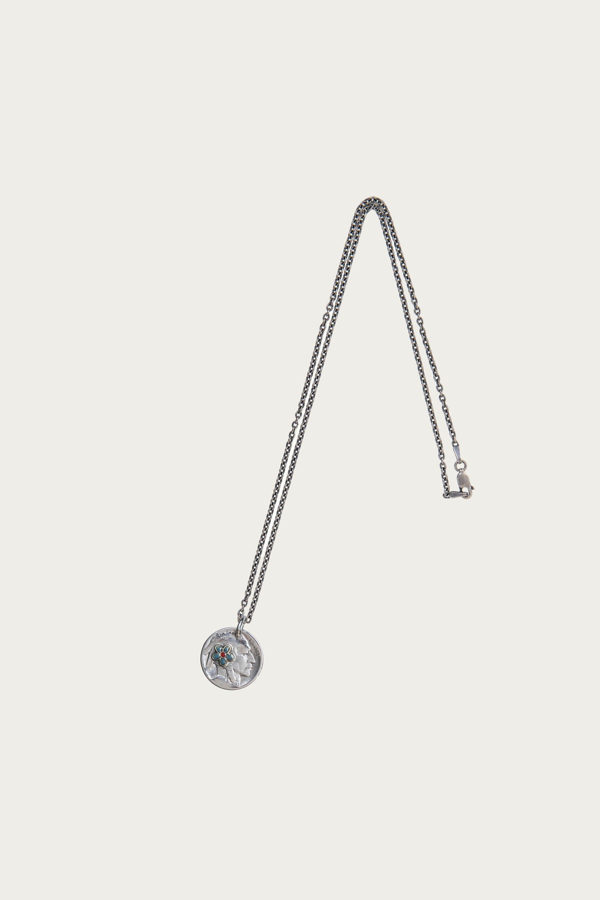 This sliver necklace with a coin charm and blue flower is a beautiful accessory for any outfit. The coin charm adds a touch of elegance, while the vibrant red flower brings a pop of color. Add this necklace to your collection for a timeless and stylish look.