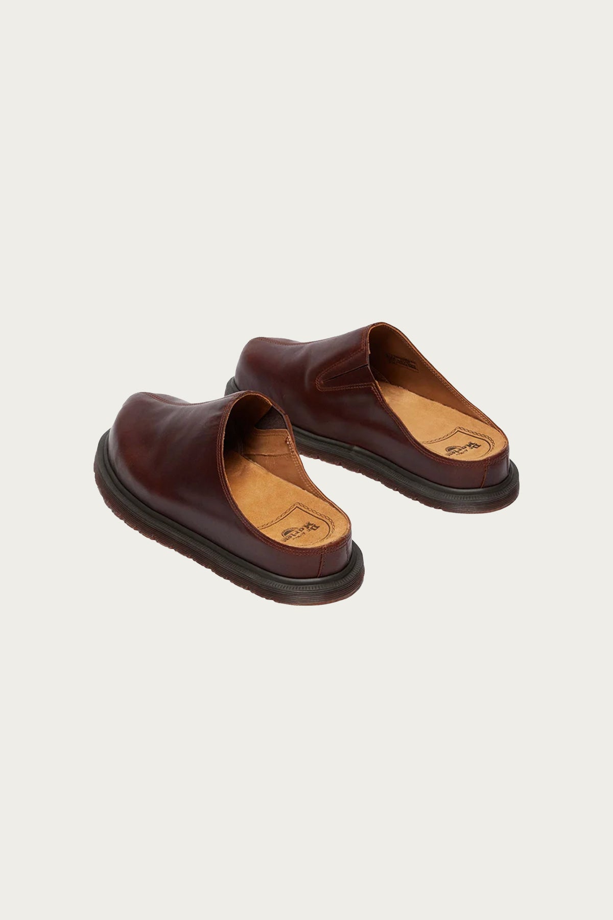 Simple styling fueled by expert craftsmanship. The easy-on San mule underscores minimal detailing with durable construction that’s built to go the long haul. A monochrome silhouette crafted from waxy Orleans leather, it features tonal stitching down the centre of the upper and is built on a 90s-inspired San sole. Butterscotch colorway.