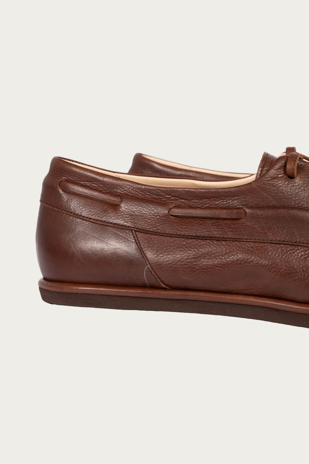 Crafted from premium calf leather sourced from New Zealand and tanned in Italy, these deck shoes are a blend of luxury and craftsmanship. Handmade by skilled Japanese shoemakers, they offer an exceptionally comfortable fit. With high-quality materials and attention to detail, these shoes are designed for both style and durability. Slight variations in texture and minor scratches are a natural characteristic of the leather.