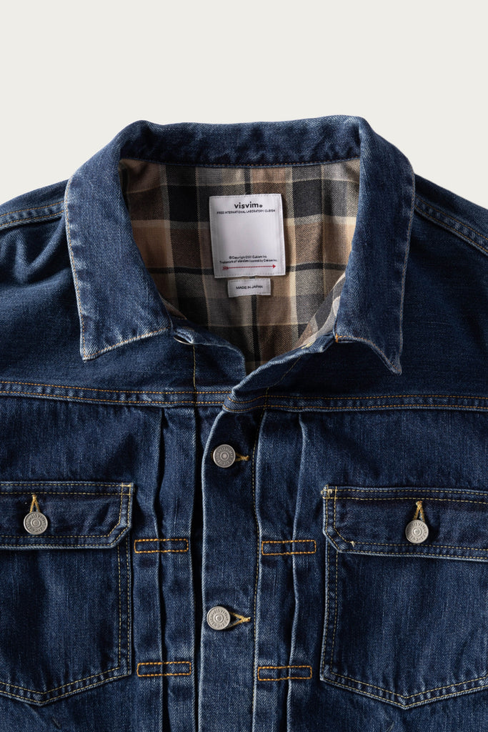 Born out of a desire to keep the denim feeling starchy and dry like when you first get a pair of shrink-to-fit denim, but still wanting the worn out look of a jacket that has been through multiple washes, the SS101 is a jacket that started out in a raw form and shrunk down to allow it to be processed and get the great washed out look. Then, through the careful art of heating the denim up, the makers are able to remove the oil and return the denim to feeling crispy and new. This balance of new and old creates a new version of the denim jacket that is exclusive to Visvim. Working from a Type II silhouette, the finished product is a perfect blend of the slimmer fit of a Type III trucker, but the look of the 50s Type II. If you are looking for the ultimate denim jacket, look no further for one of the most considered versions we have seen in the shop. This model has been fully lined with an ultra soft brushed flannel for warmth.