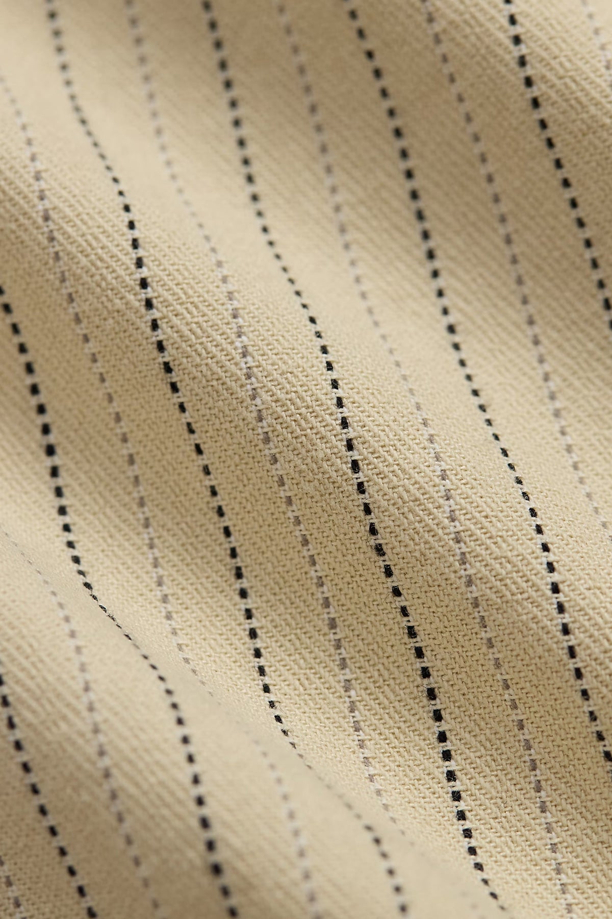 Trim-fitting pants made with cotton twill. Yarn-dyed striped pattern. Button fly. Lightly washed. Corozo buttons.