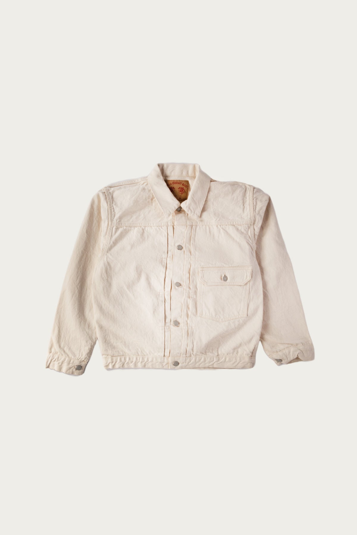 A fresh take on a classic silhouette, this Type 1 jacket from Full Count swaps out indigo for a clean ecru finish, keeping all the vintage DNA intact while feeling distinctly modern. Made from a 13oz selvedge denim woven with Zimbabwean cotton, it's soft from the start and only gets better with wear. That ecru base is perfectly suited for tonal layering or contrasting deep shades-- one of those pieces that sneaks its way into every outfit.
