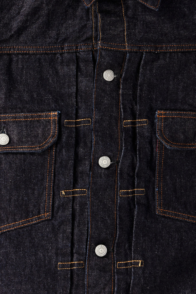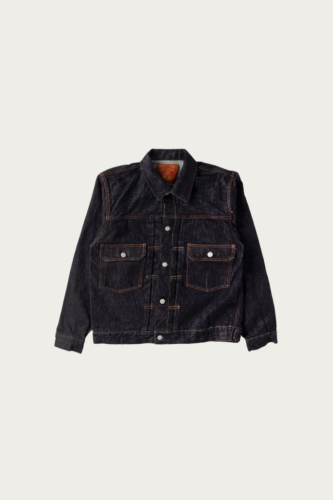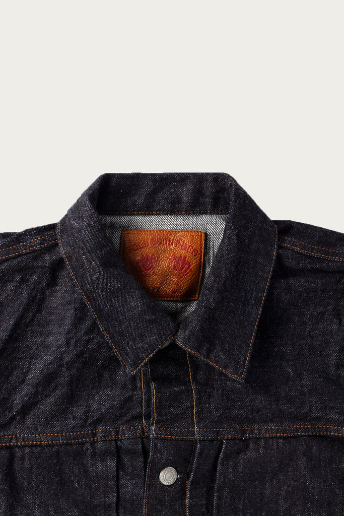 A classic redefined. Crafted from Fullcount’s signature 15.5 oz selvedge denim—made with hand-picked Zimbabwean cotton and woven on vintage shuttle looms in Okayama—this is a jacket built for depth and character