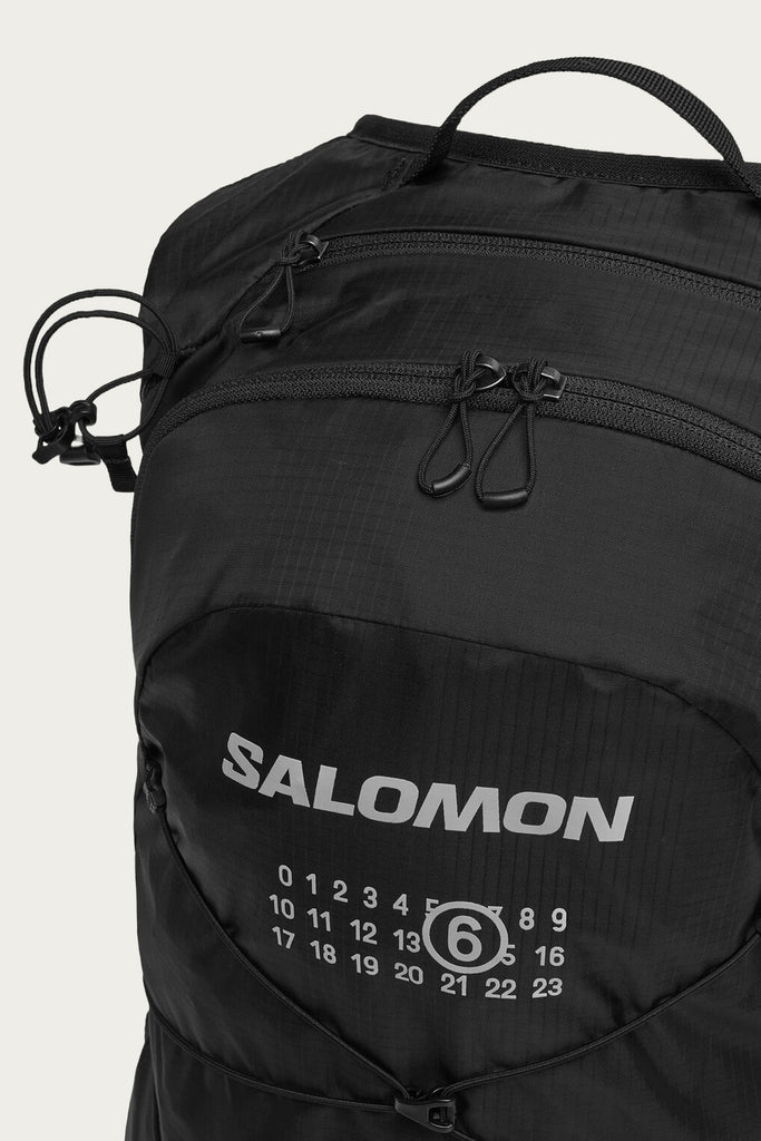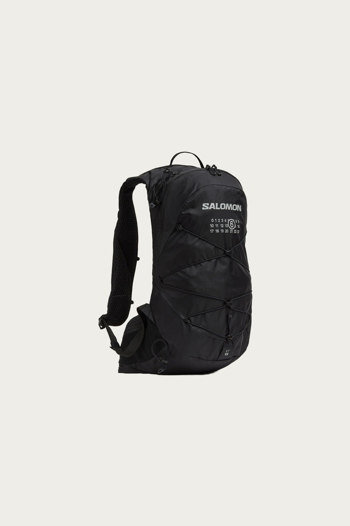 The MM6 Maison Margiela x Salomon XT 15 Backpack is a fusion of high-fashion aesthetics and technical outdoor performance. Crafted from durable nylon with a polyester lining, this backpack offers a 20-liter capacity and weighs approximately 556 grams. It features multiple compartments, including two front pockets compatible with 500 ml flasks and a specific compartment for a 2-liter reservoir, catering to hydration needs during activities. The design includes adjustable sternum straps, a large hip belt with a pocket, and a breathable back system for comfort. Reflective details and co-branding elements add to its distinctive look.