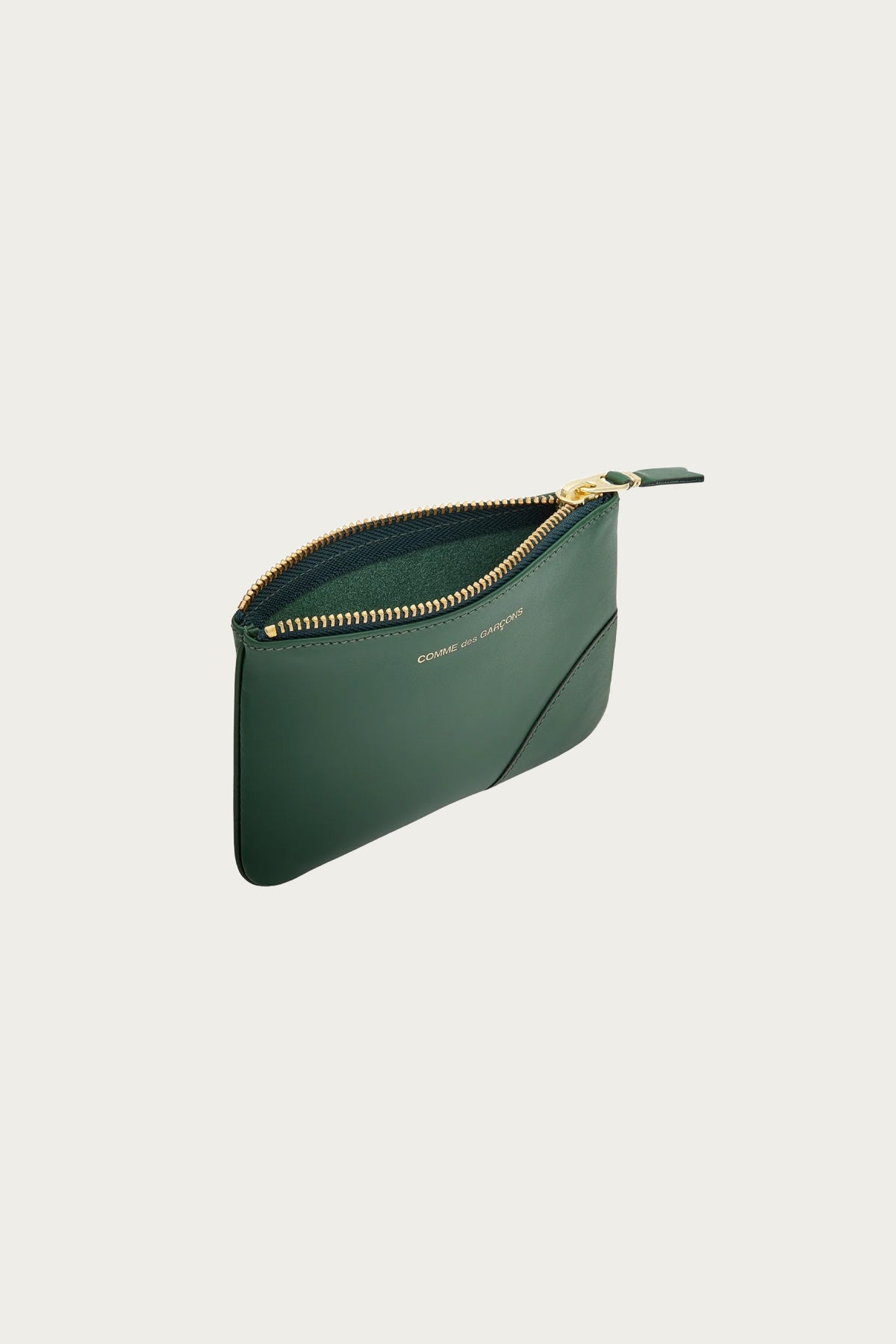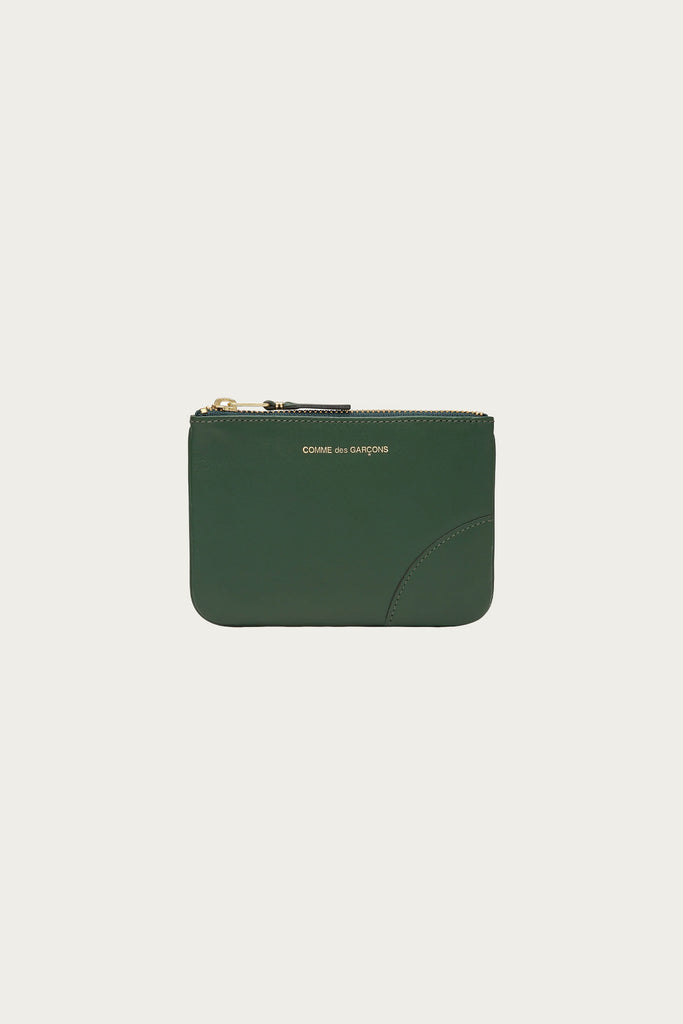 A signature from Comme des Garçons Wallet, the SA5100 zip pouch is crafted from premium leather in a bold bottle green. Part of the Classic Colour line, this minimal design features a smooth finish and gold-tone zip closure—simple, functional, and timeless.